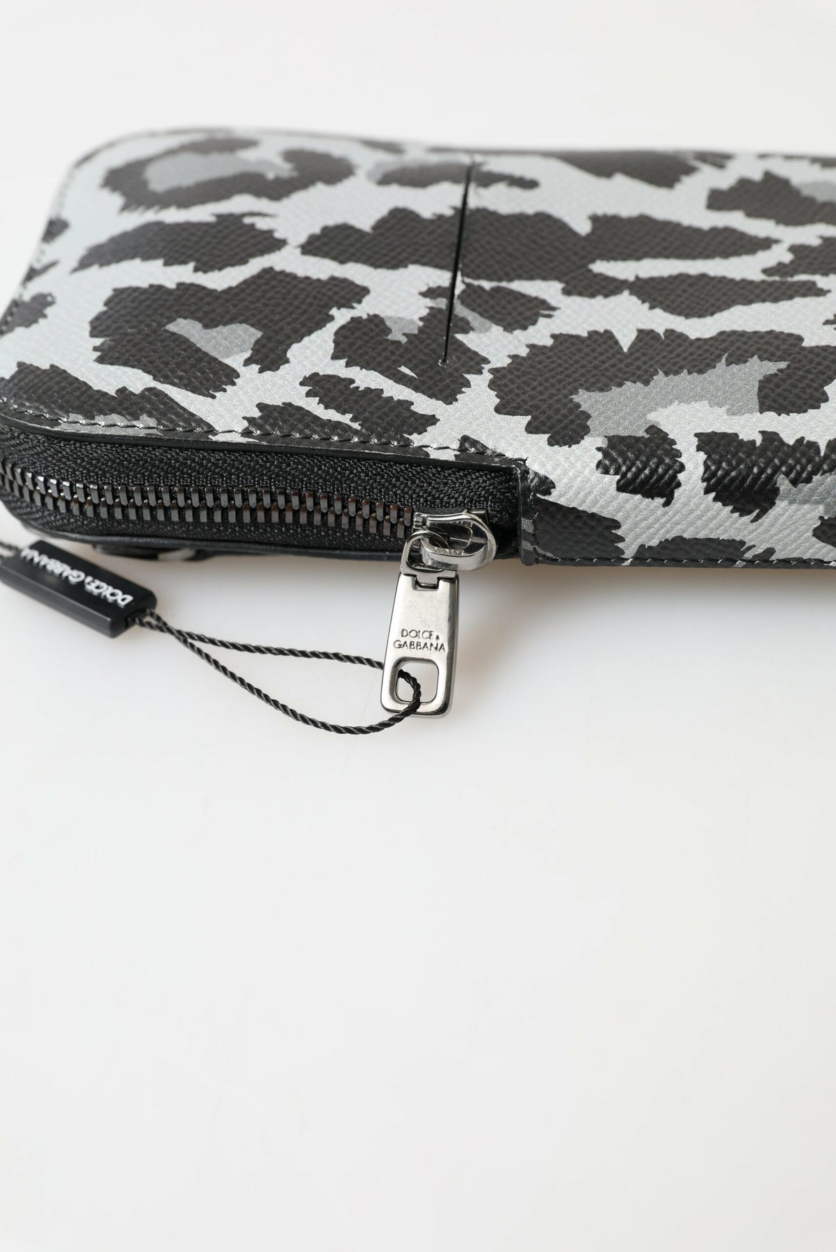 Dolce & Gabbana Gray Leopard Leather Men Purse Crossbody Sling Phone Bag