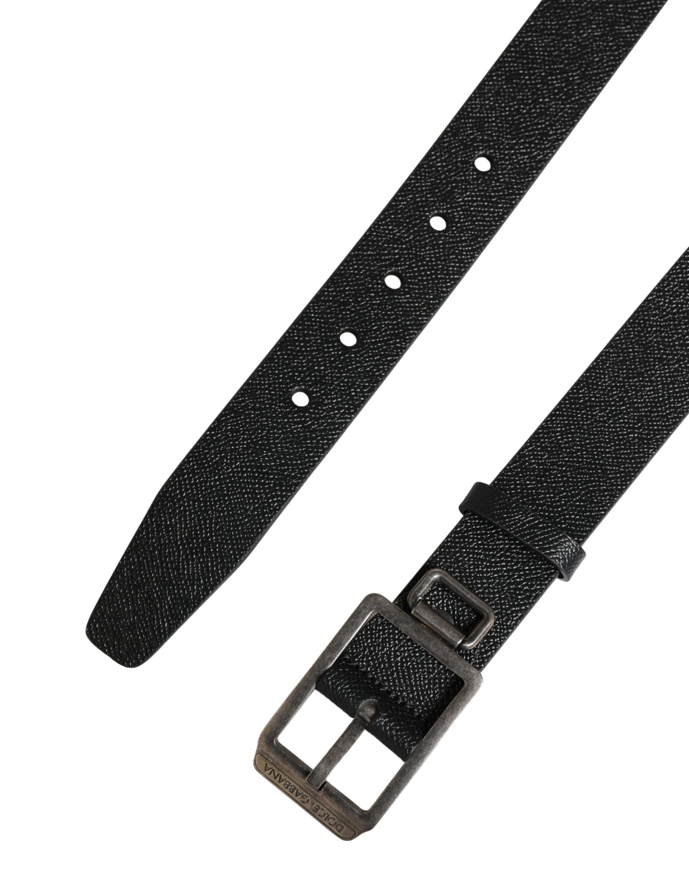 Dolce & Gabbana Black Calf Leather Silver Metal Buckle Belt