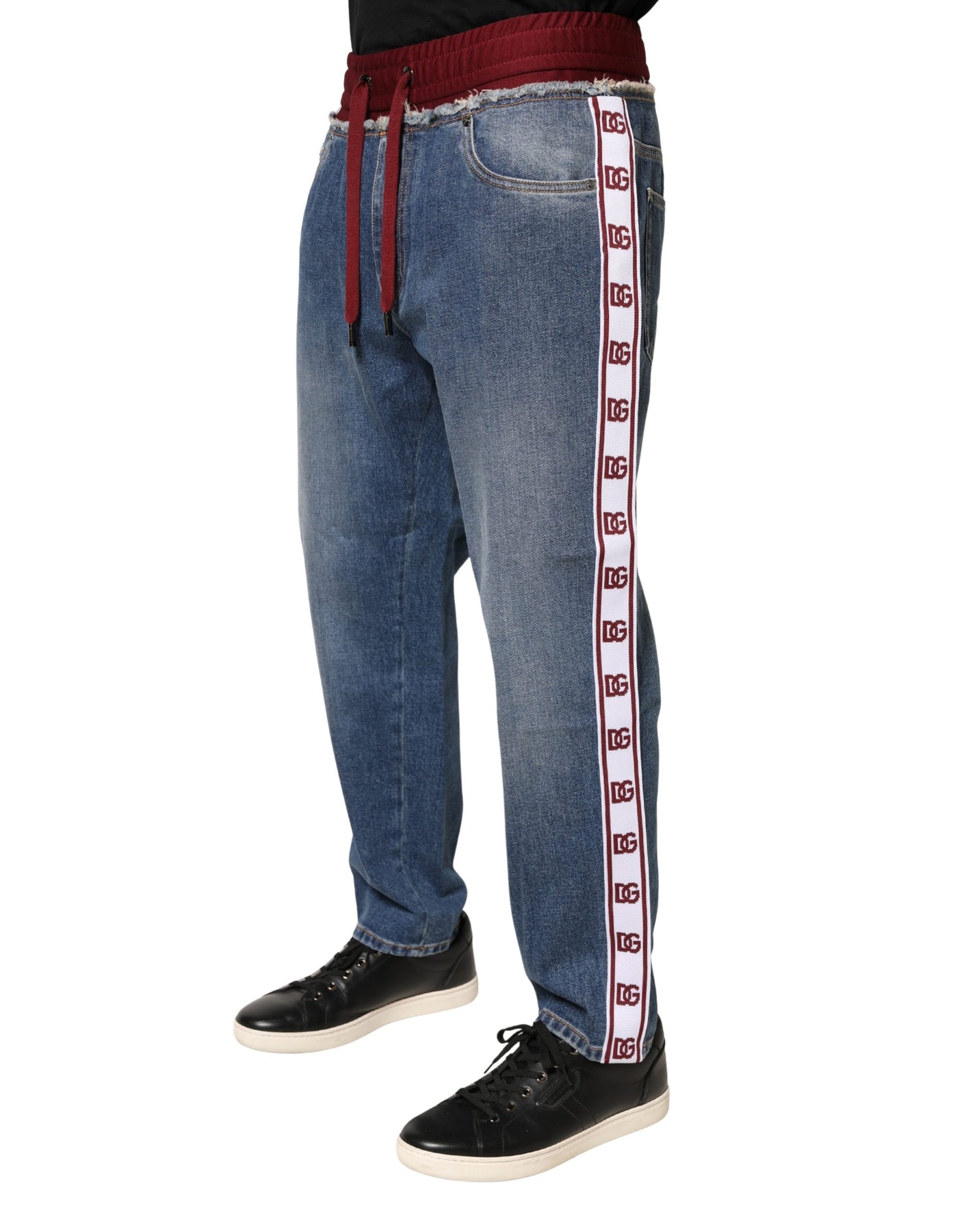 Dolce & Gabbana Blue Cotton Drawstring Straight Denim Jeans