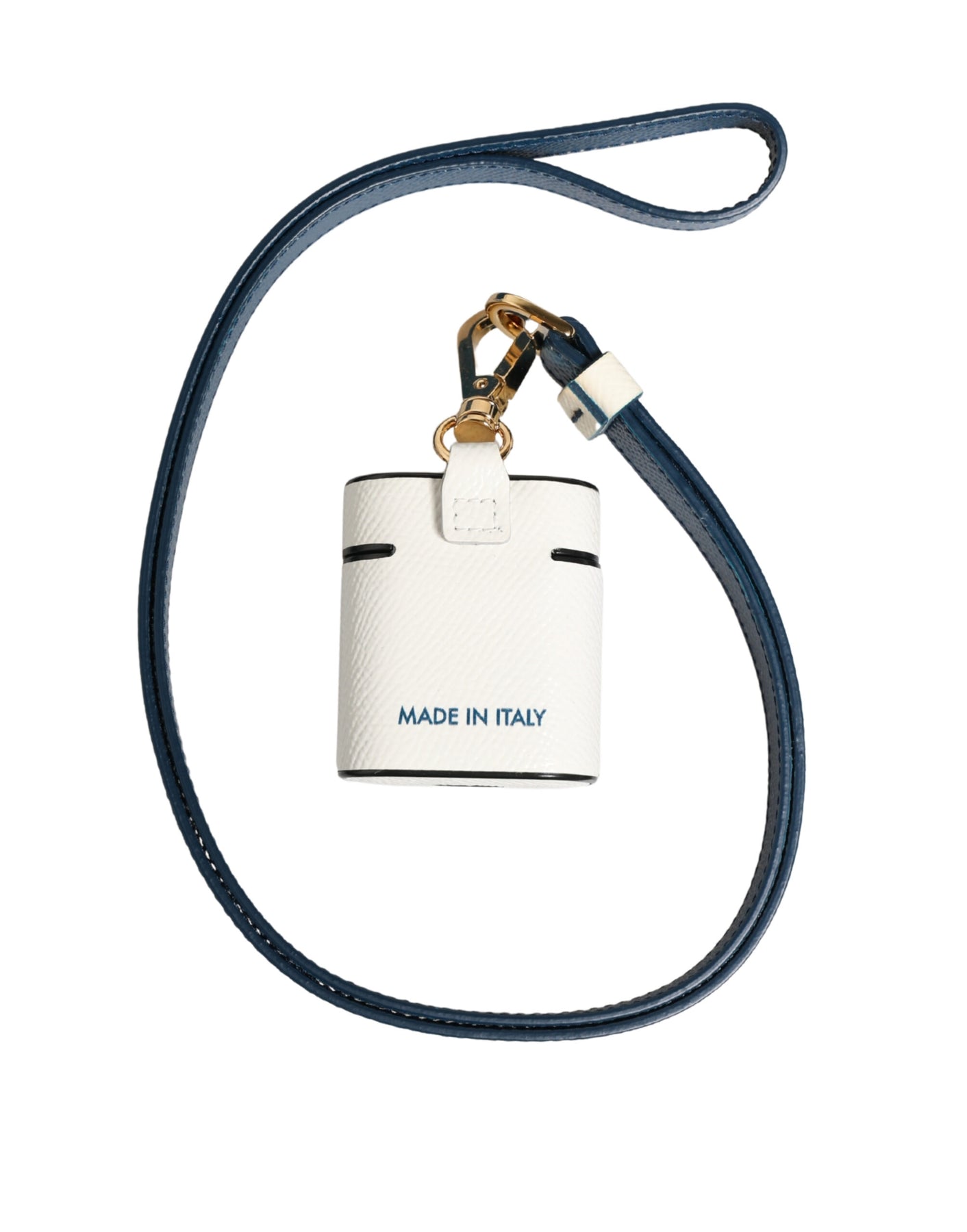 Dolce & Gabbana White Calf Leather Logo Flip Holder Strap Airpods Case