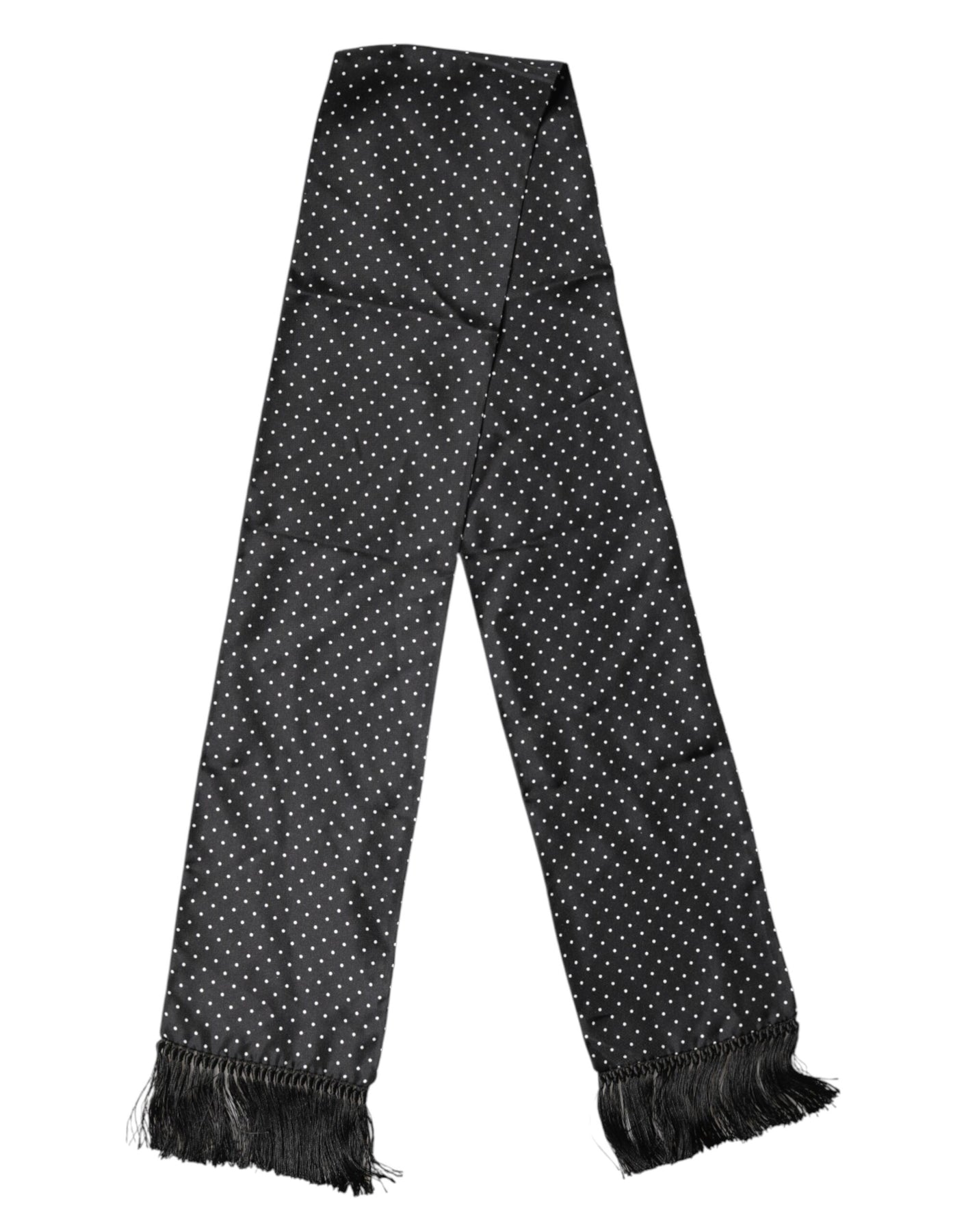 Dolce & Gabbana Black Polka Dot Fringes Silk Foulard 139cm x 14.5cm Scarf