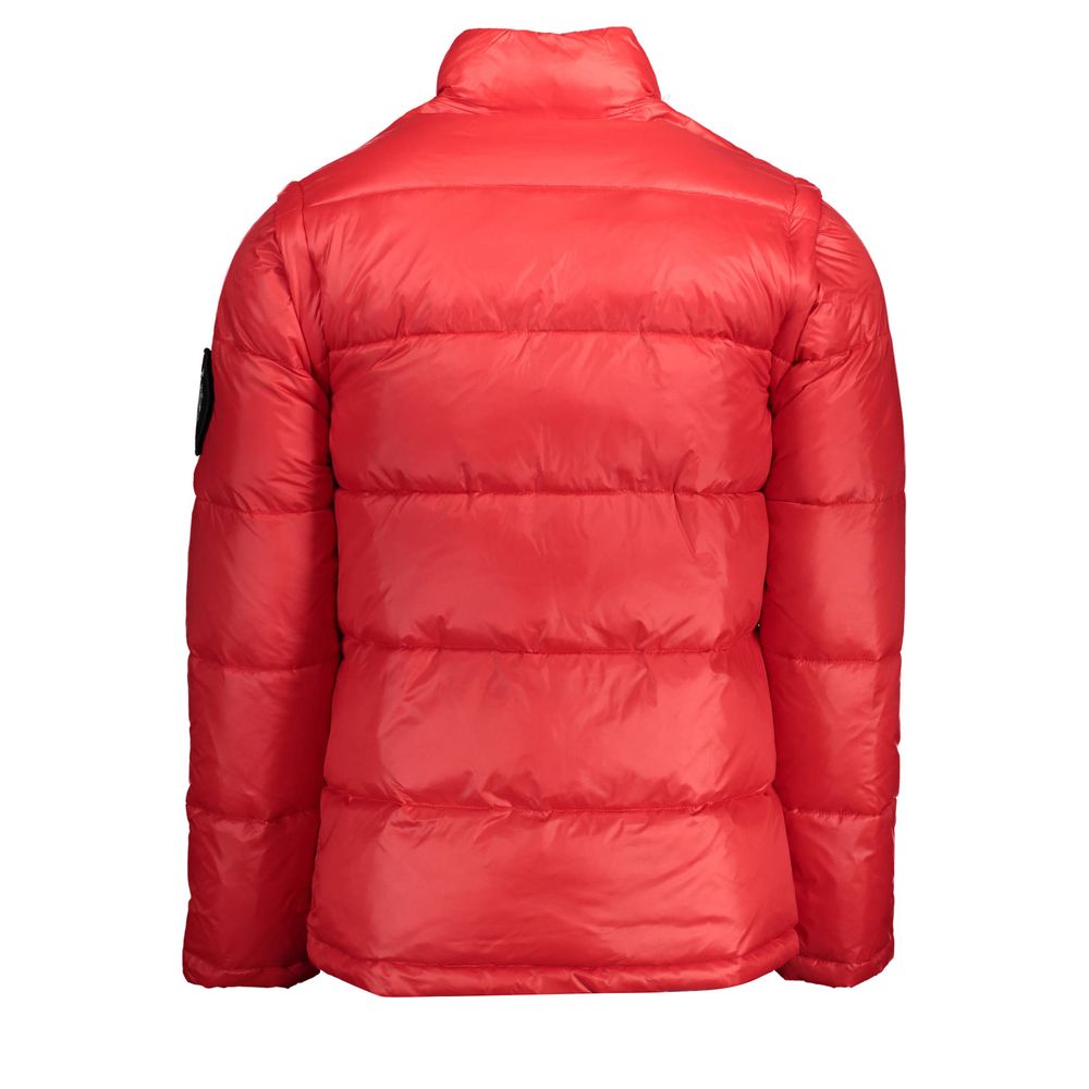 removable long-sleeved jacket, 2 external pockets, 1 internal pocket, zip, print, logo