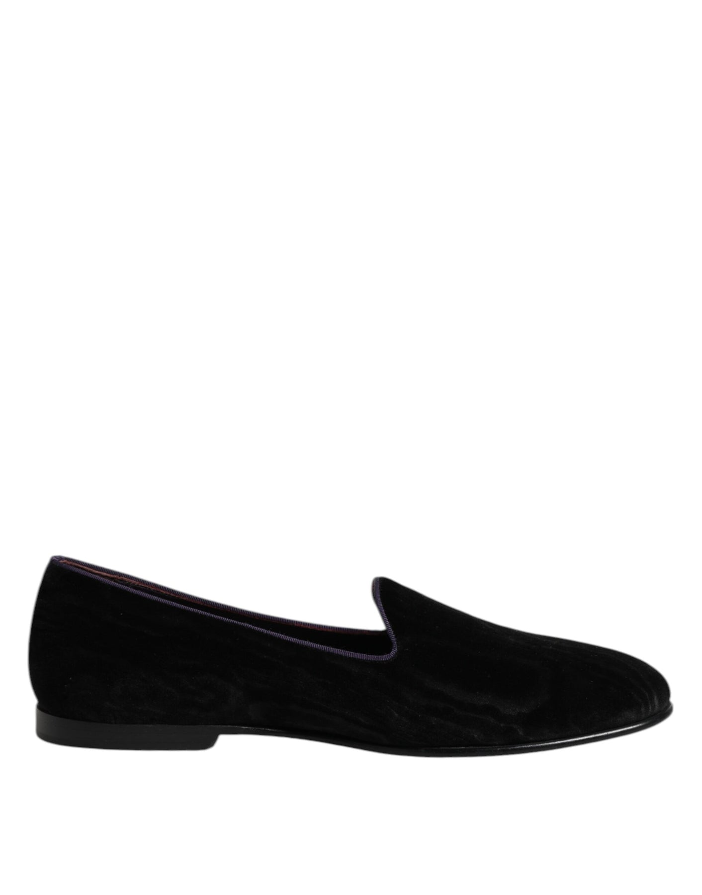 Dolce & Gabbana Black DG Crown Embroidery Loafers Slip On Shoes