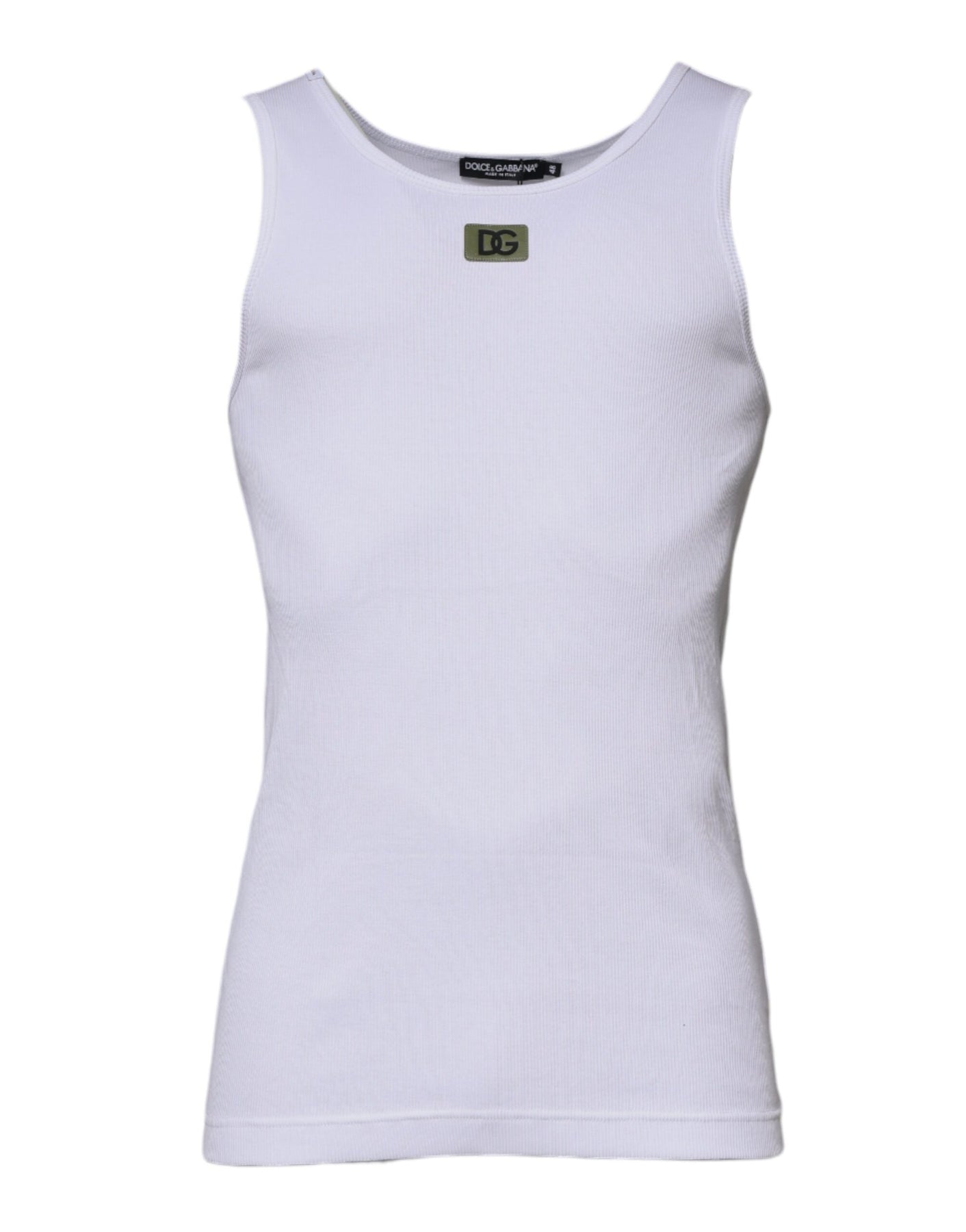Dolce & Gabbana White Cotton Round Neck Sleeveless T-shirt