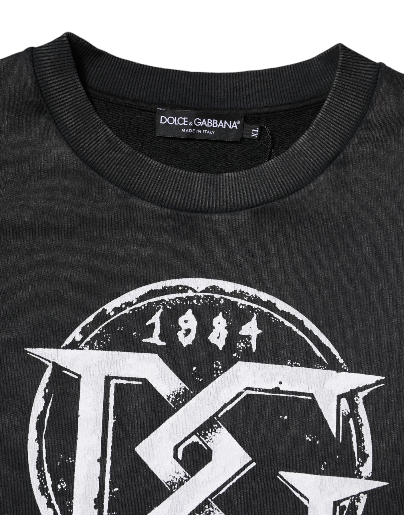 Dolce & Gabbana Black Cotton Logo Printed Pullover Sweater