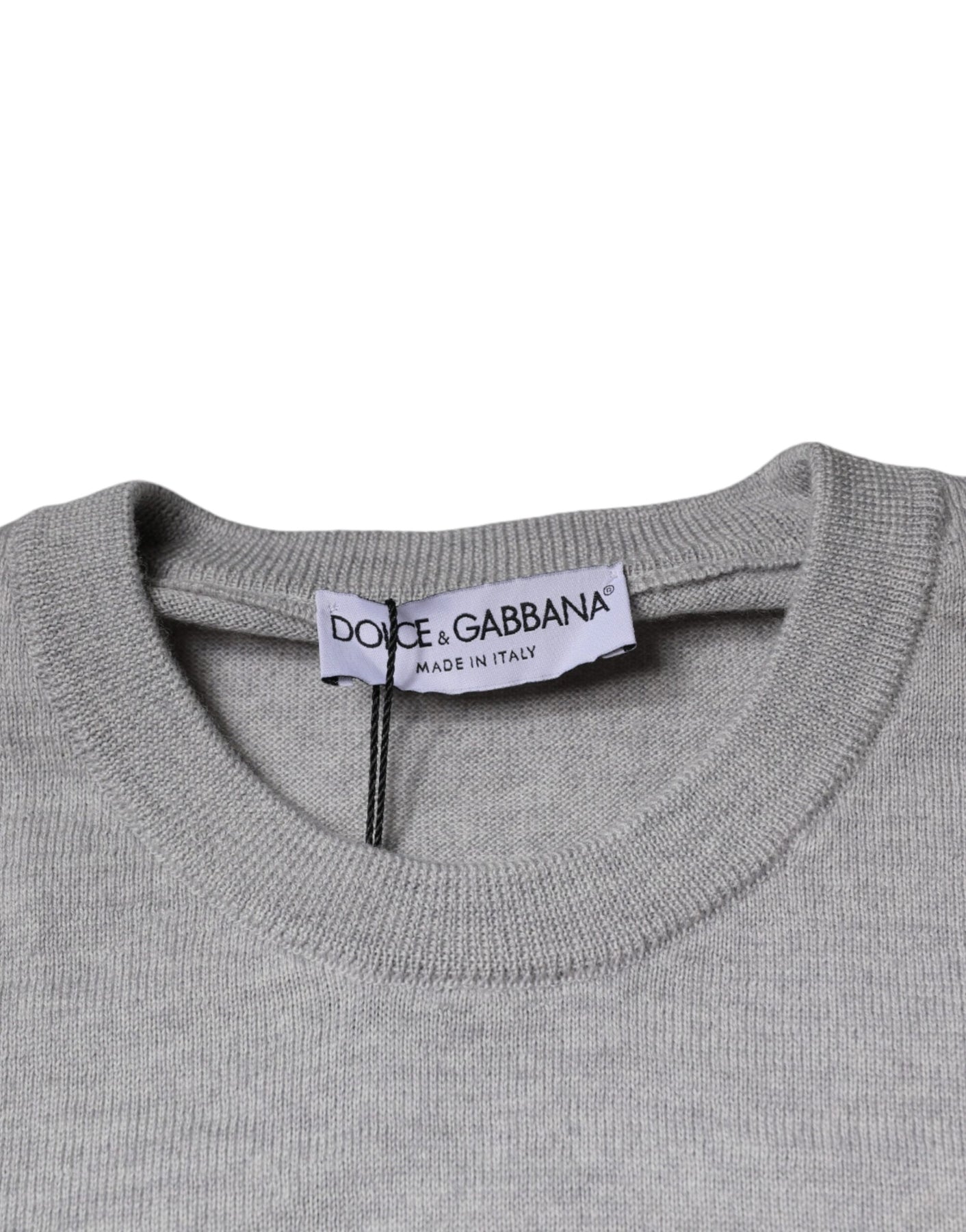 Dolce & Gabbana Light Gray Wool Crew Neck Pullover Sweater