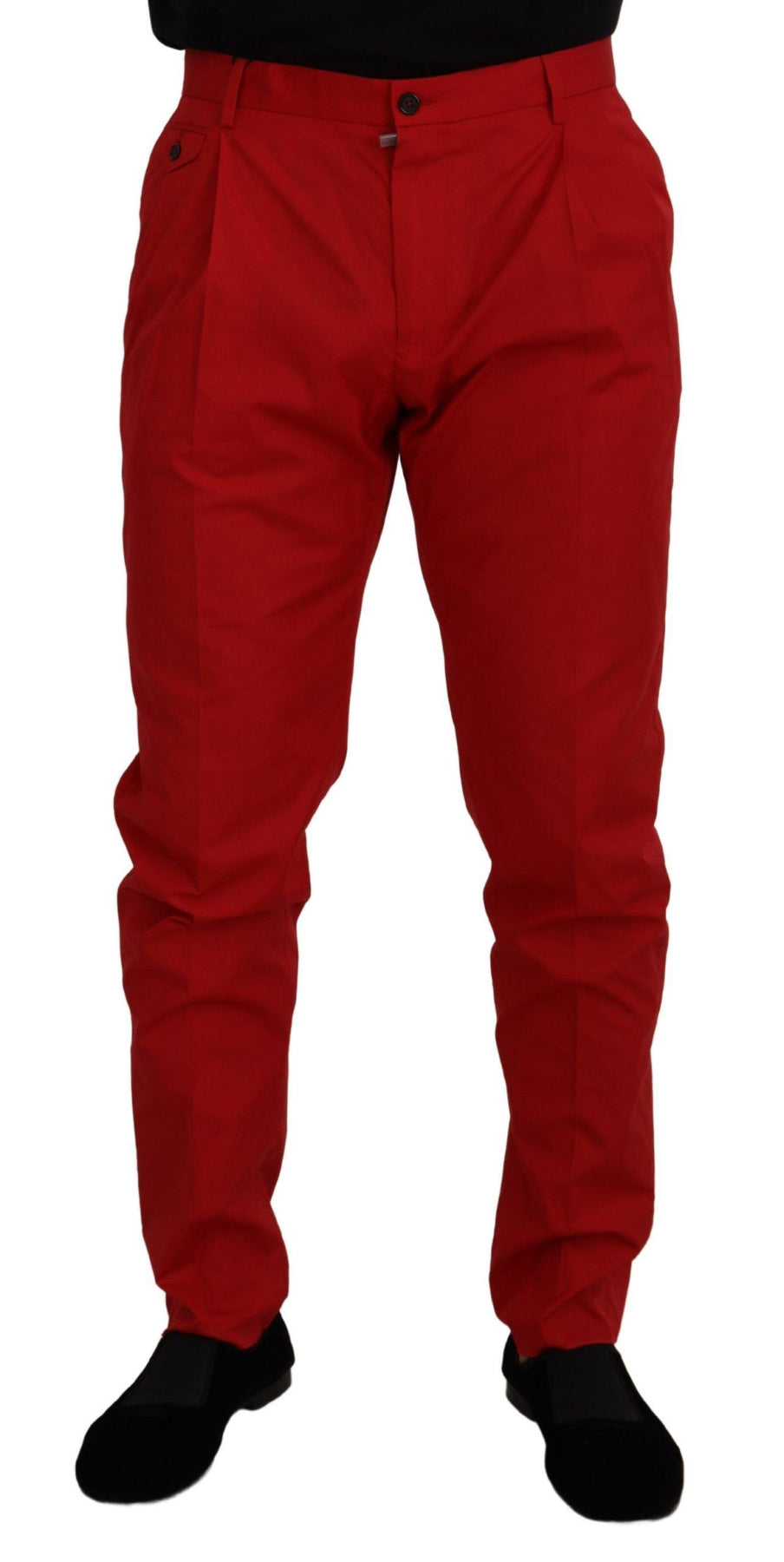 Dolce & Gabbana Red Cotton Slim Fit Trousers Chinos Pants