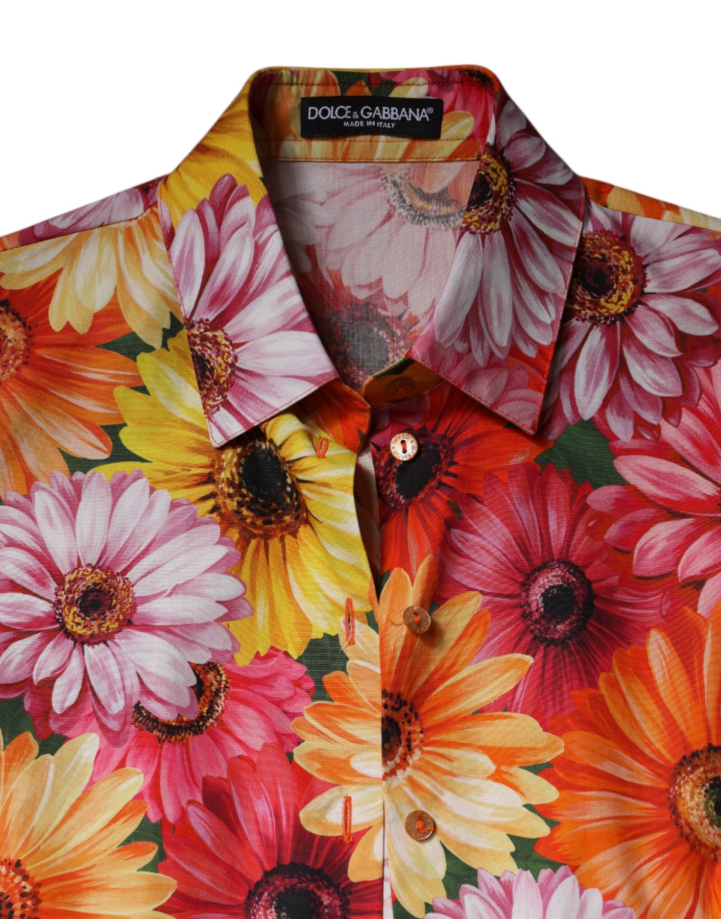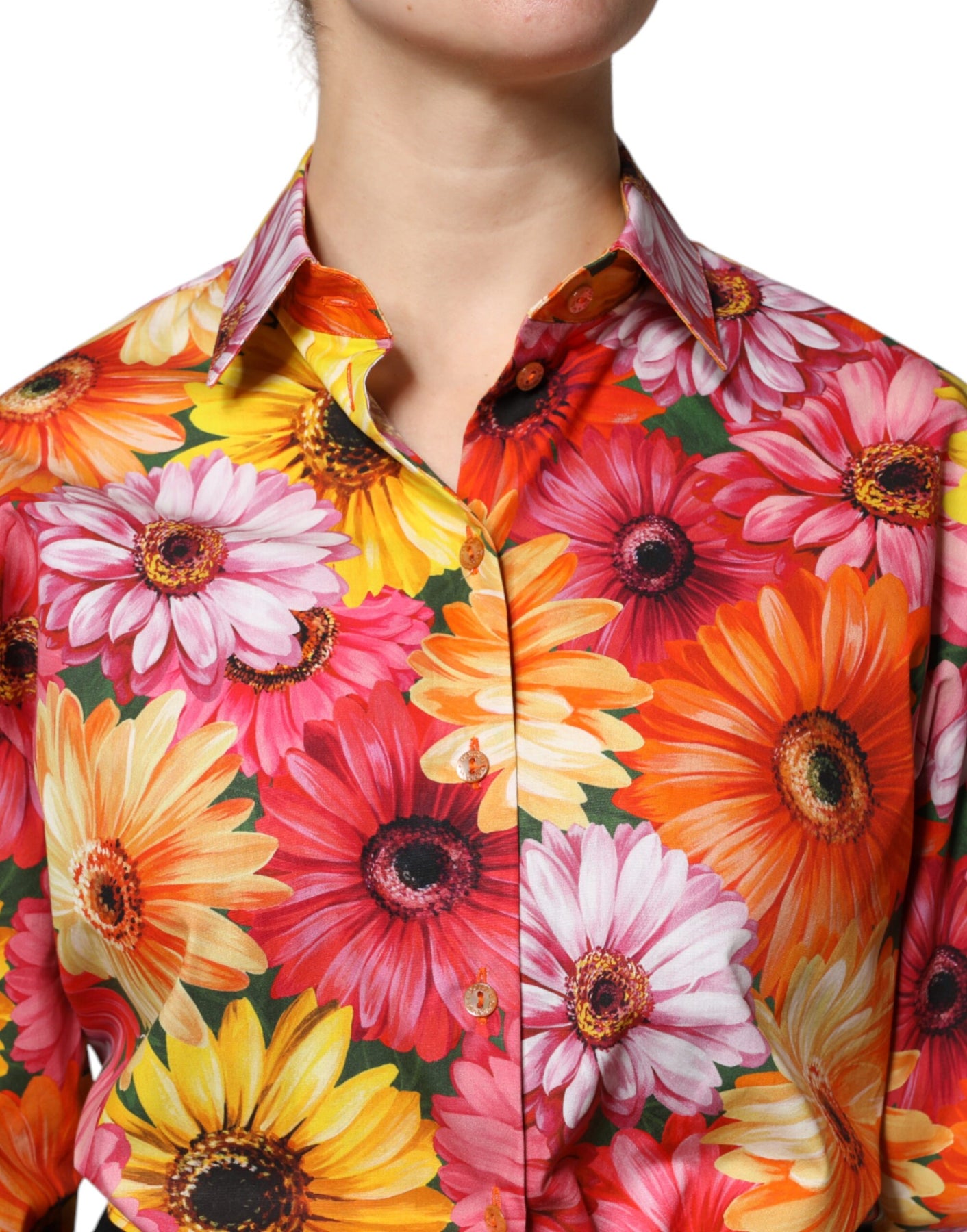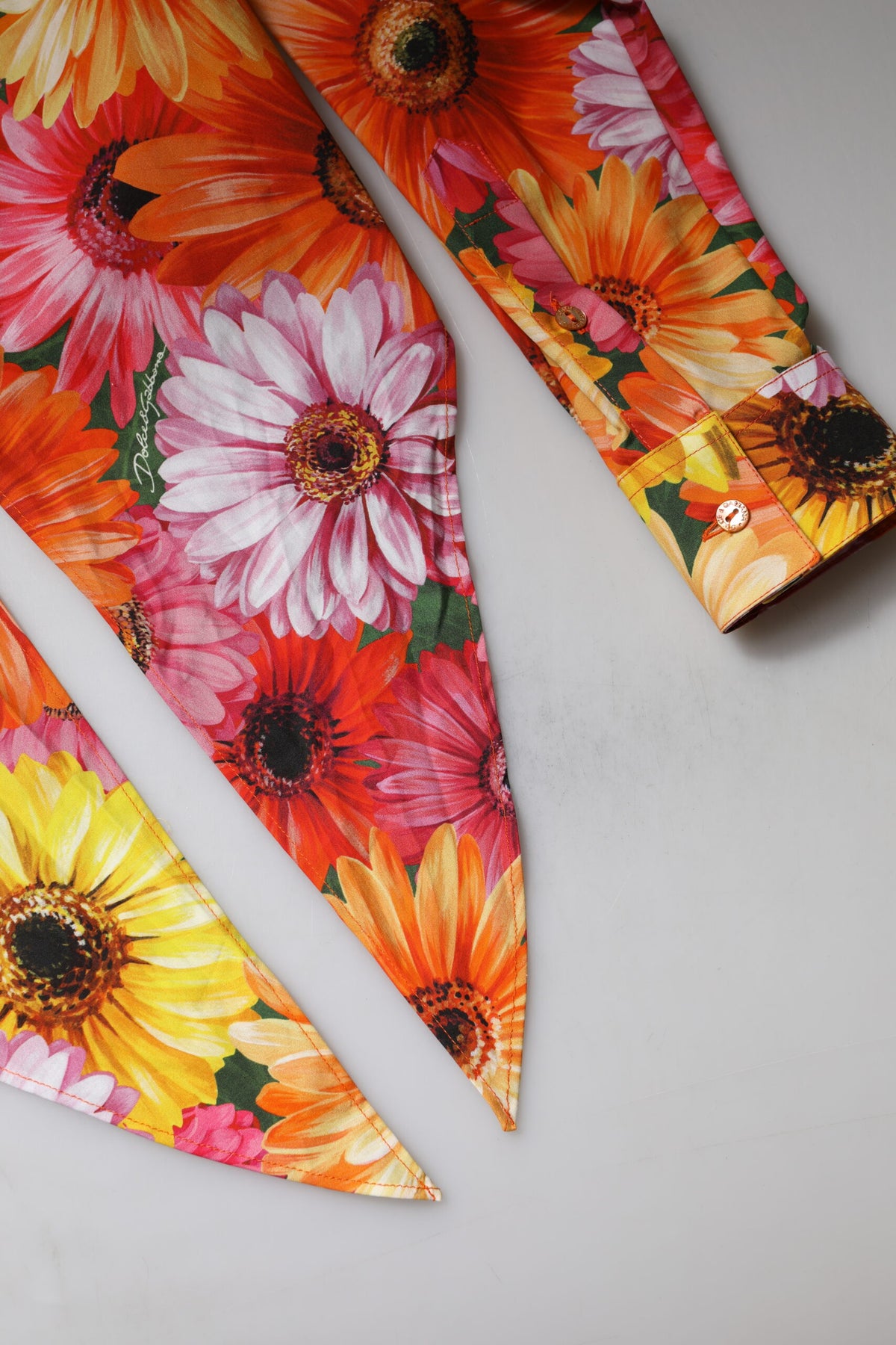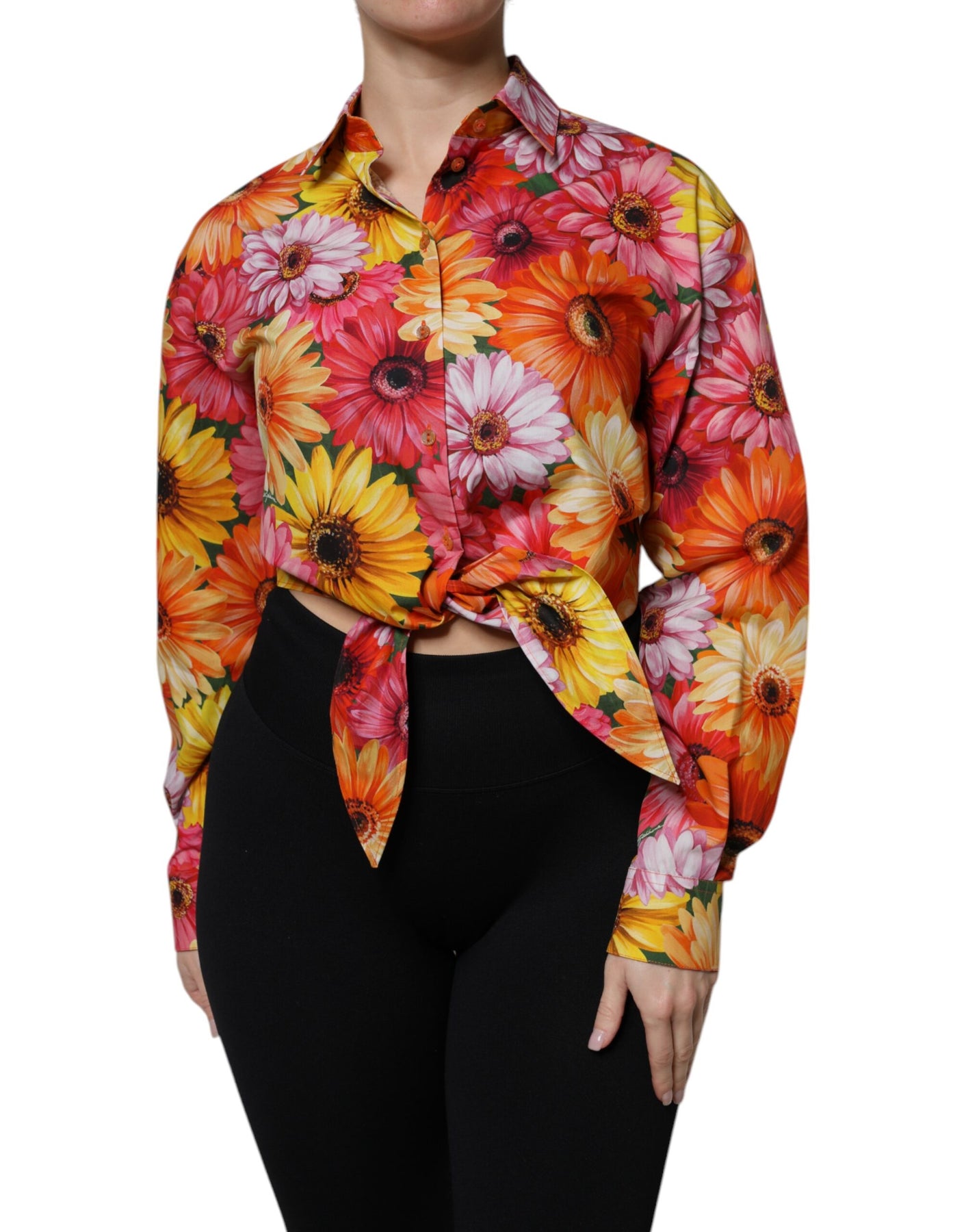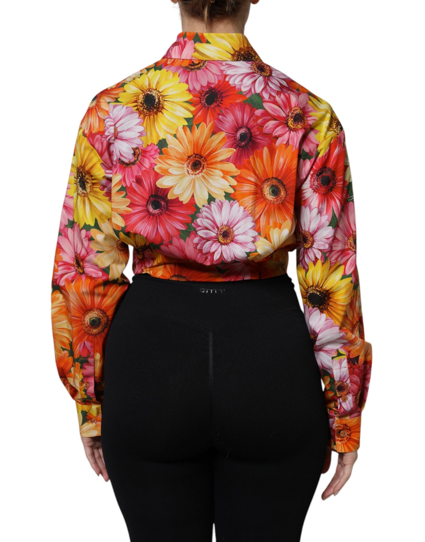 Dolce & Gabbana Multicolor Floral Cotton Cropped Blouse Top