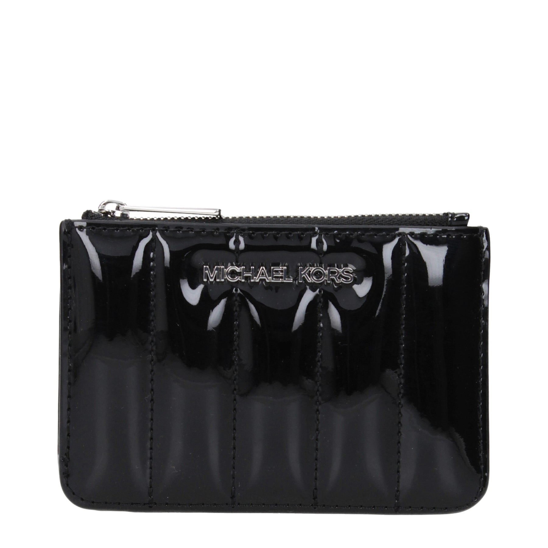 The product with MPN 35T5STVP1ABLACK and code F85050 patent leather in black is a coin purses designed by Michael Kors. It has features like front logo.