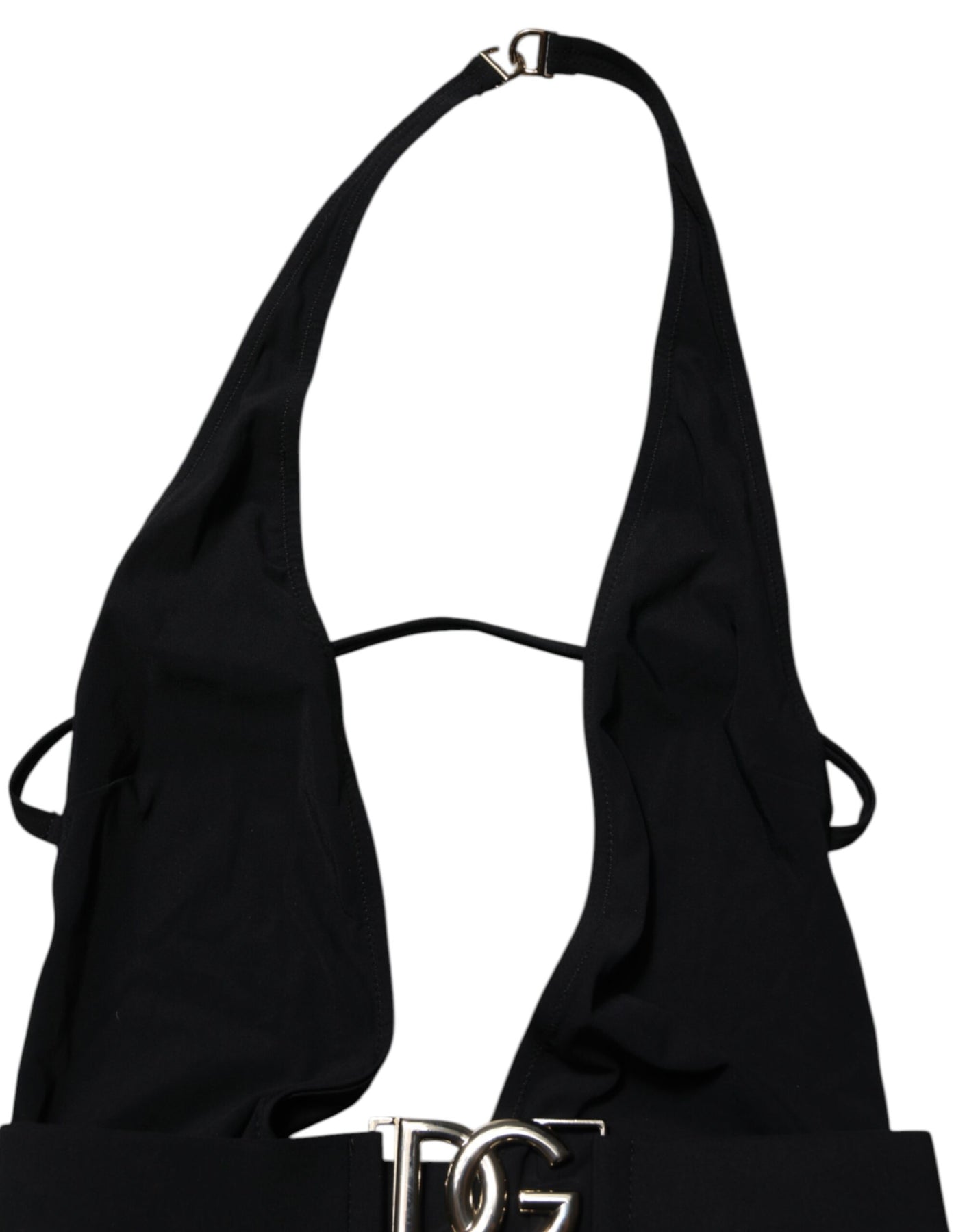 Dolce & Gabbana Black Nylon Deep V-Neck One Piece Swimwear