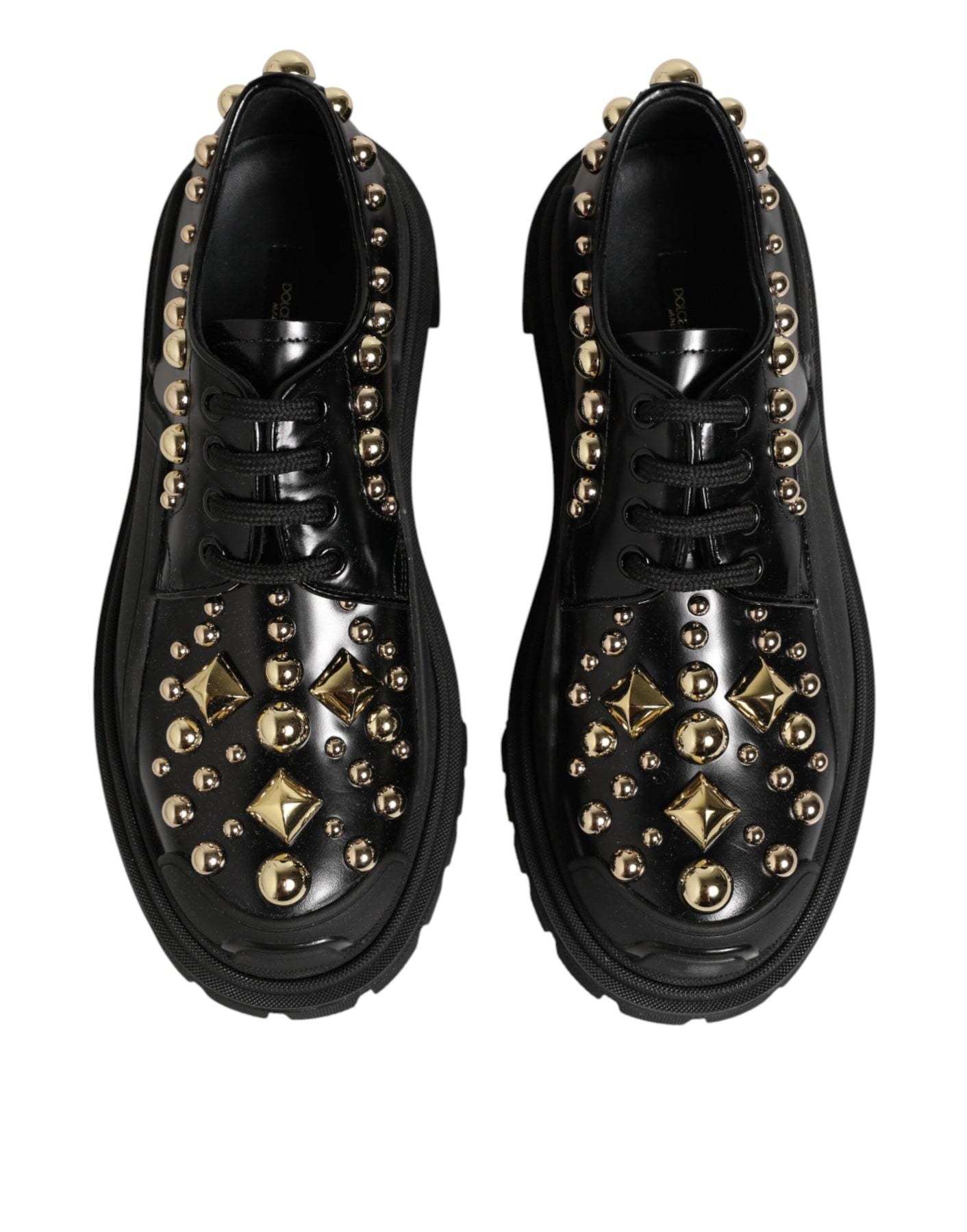 Dolce & Gabbana Black Leather Jeweled Crystals Derby Shoes
