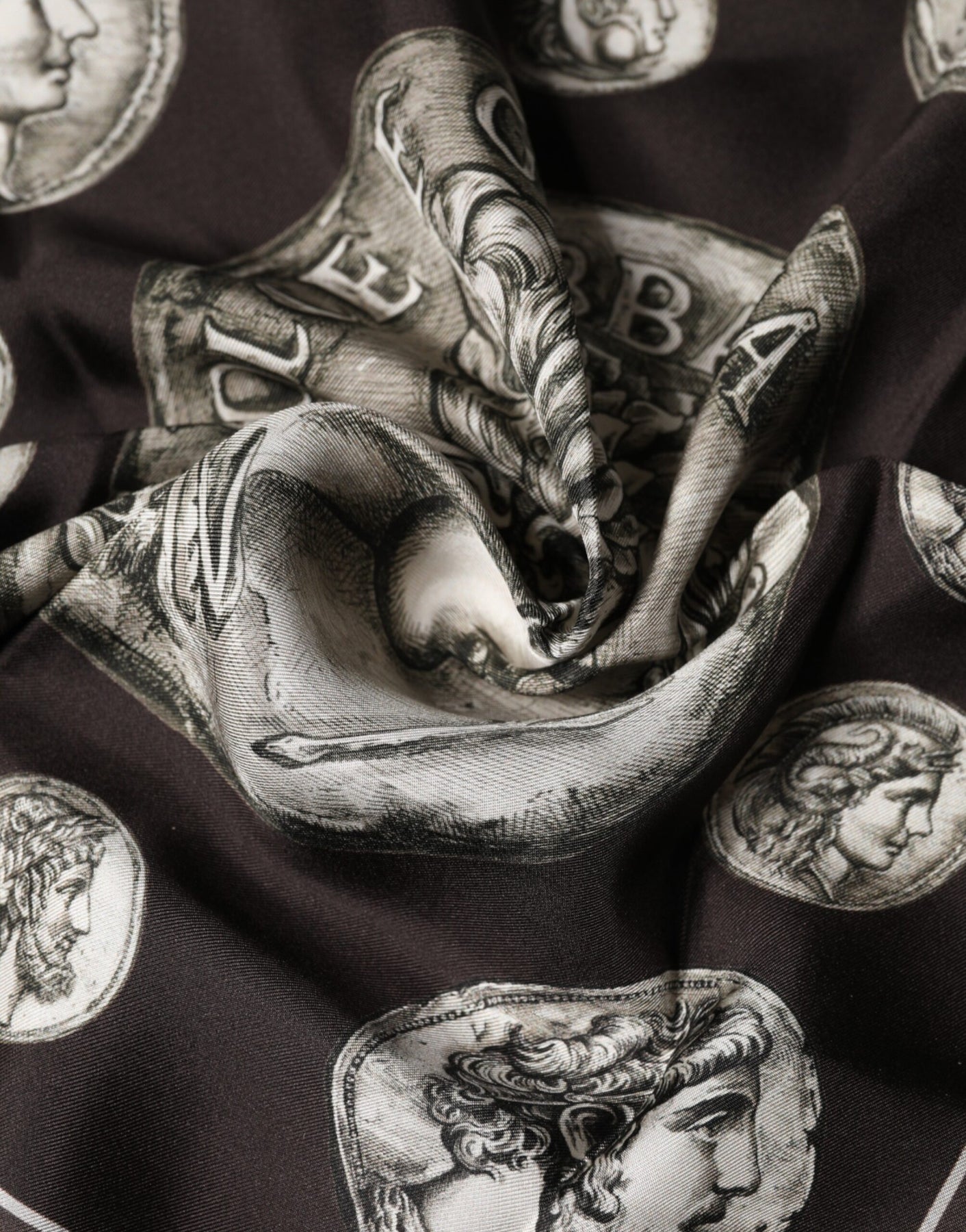 Dolce & Gabbana Brown Roman Coin Print Silk Square Foulard Scarf