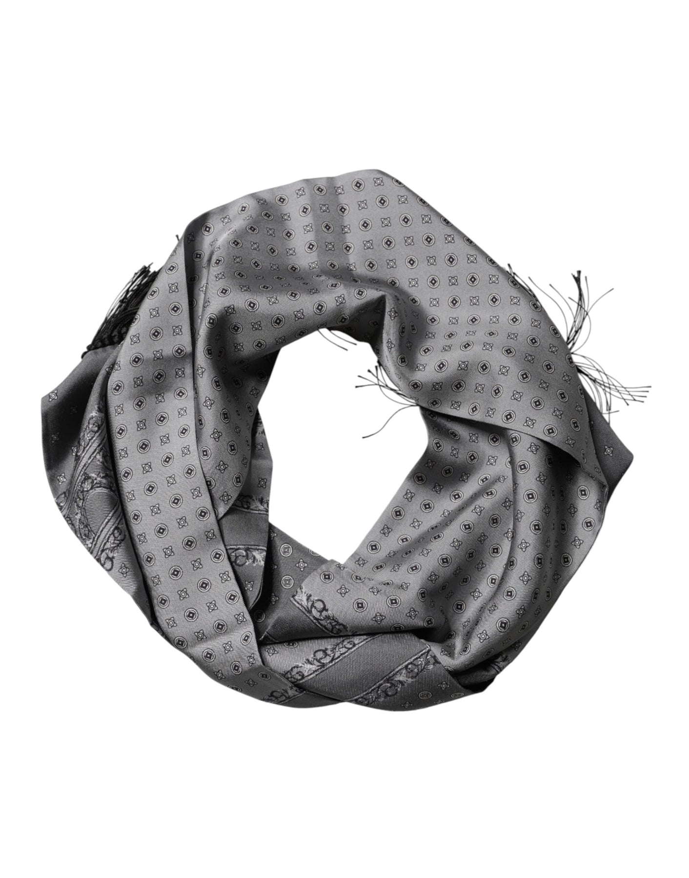 Dolce & Gabbana Gray Patterned Fringes Neck Foulard Scarf