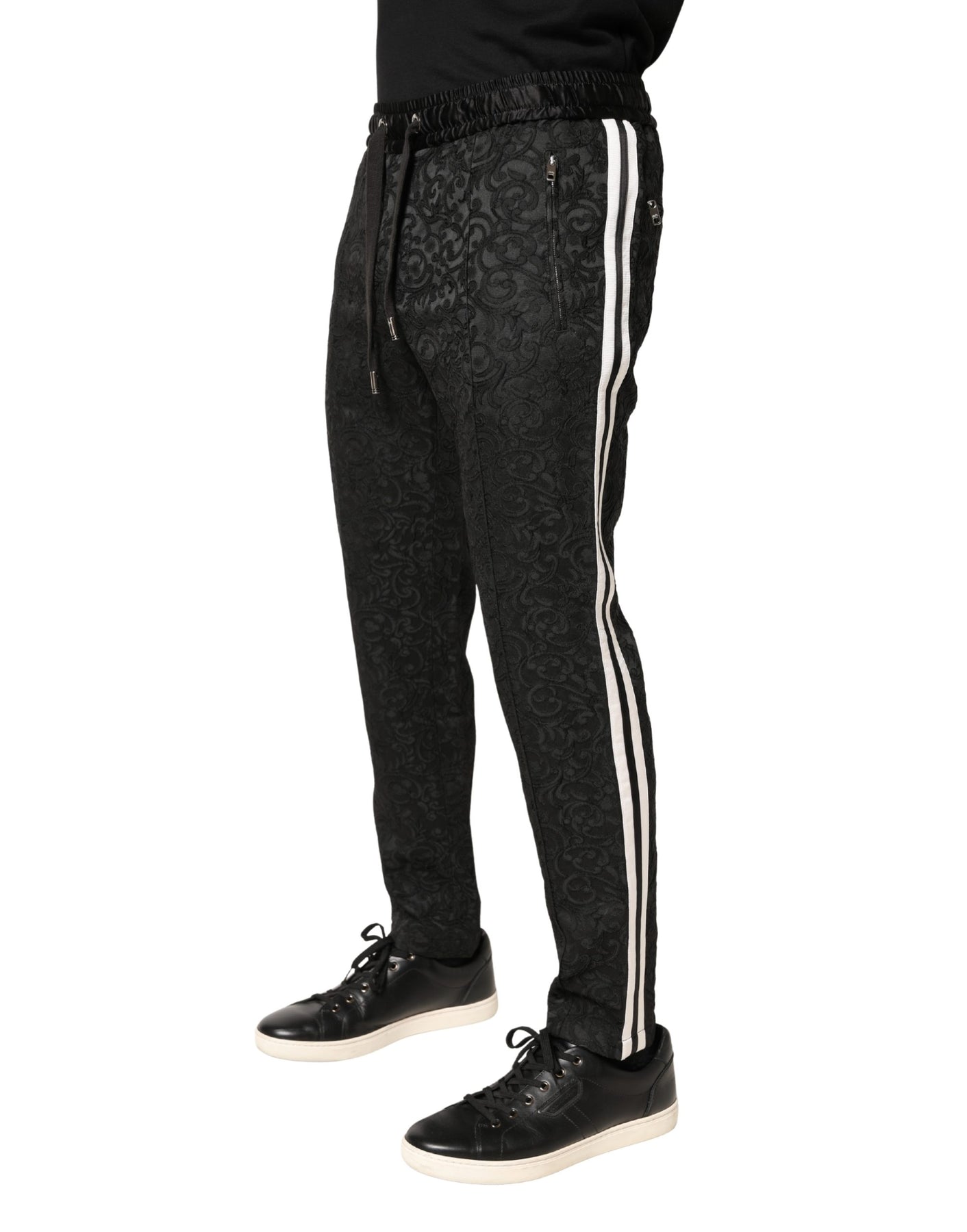 Dolce & Gabbana Black Floral Brocade Skinny Men Dress Pants
