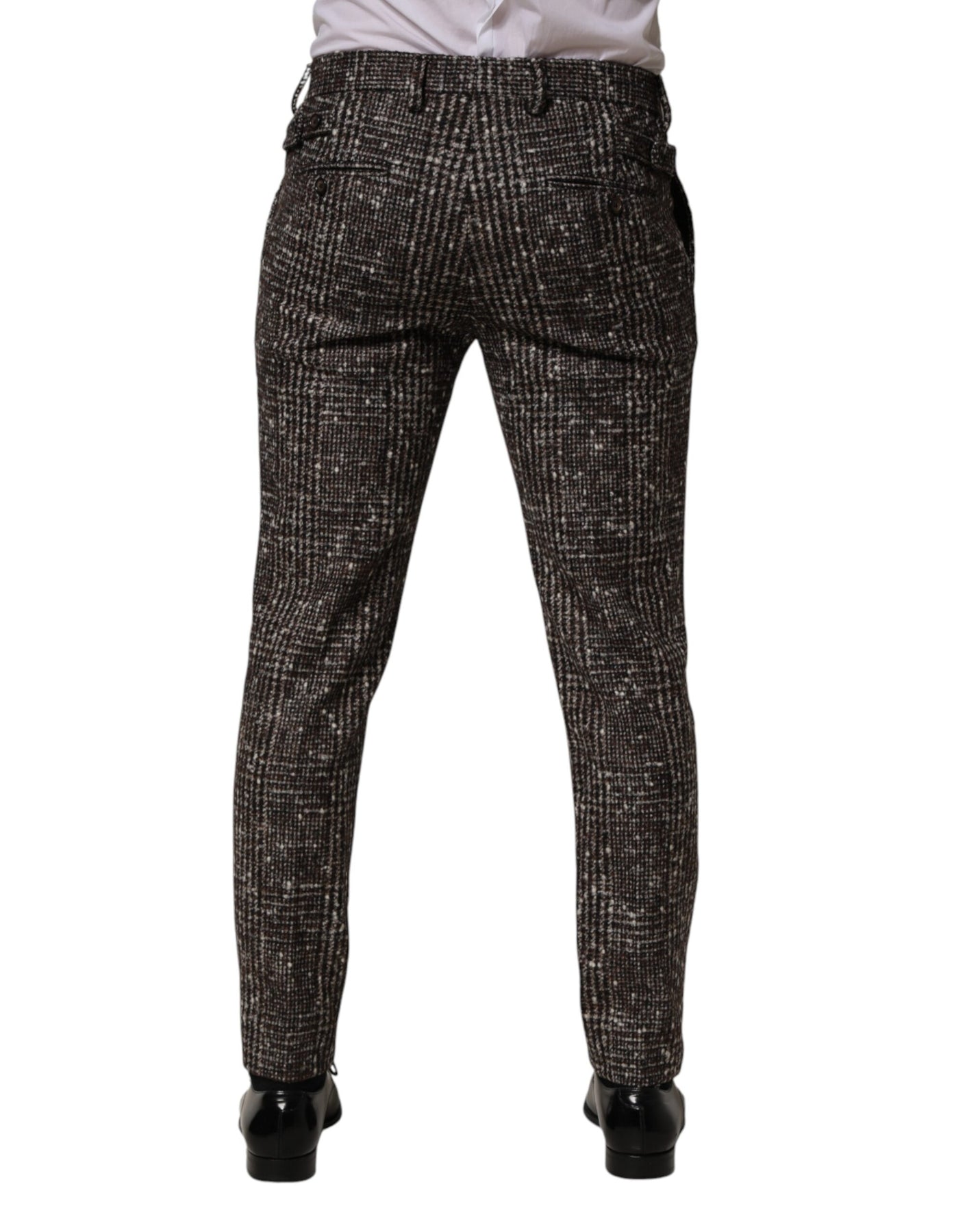 Dolce & Gabbana Brown Wool Plaid Skinny Dress Trouser Pants