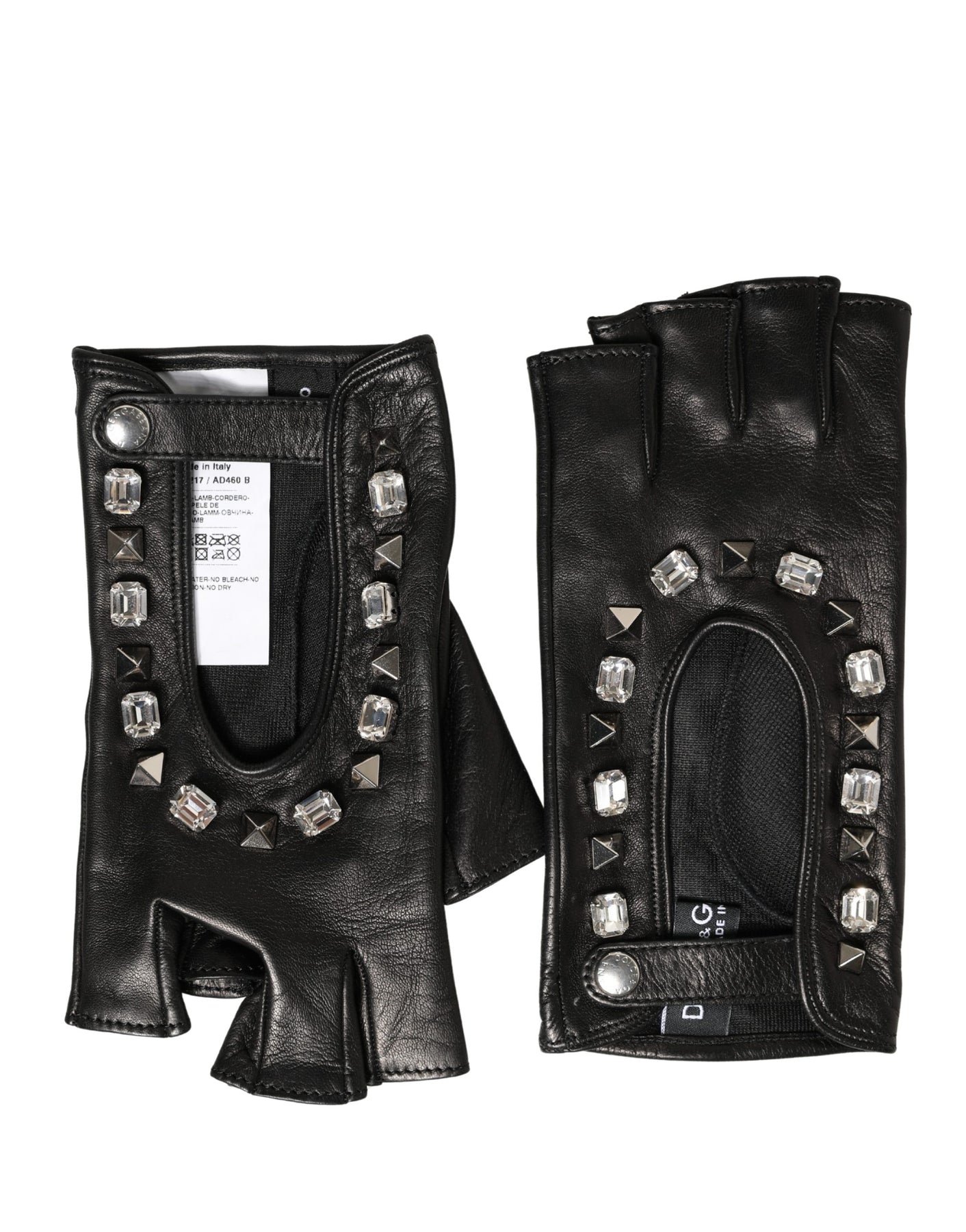 Dolce & Gabbana Women Black Embellished Wrist Length Mitten Gloves