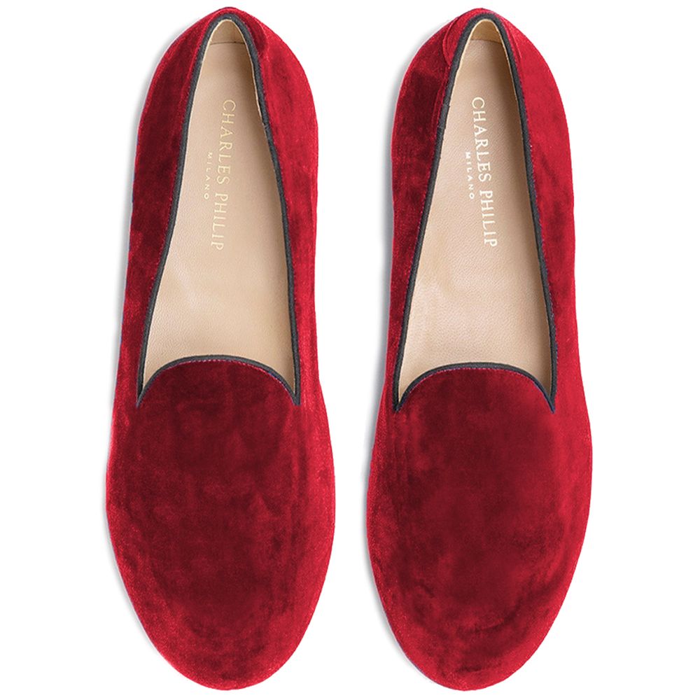 Charles Philip Red Velvet Loafer
