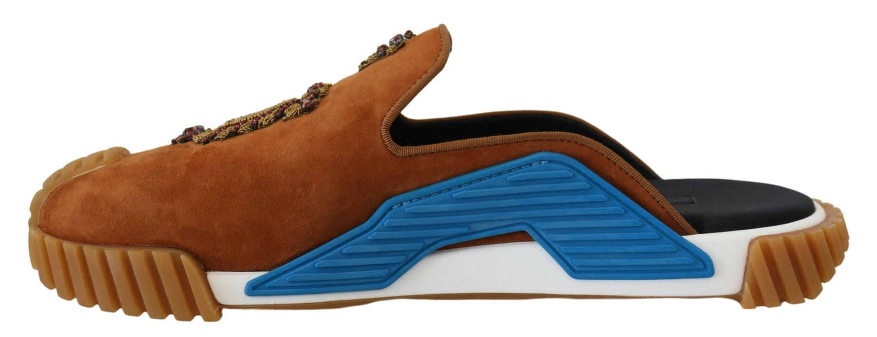 Dolce & Gabbana Beige Suede Crystal Slides Sandals Flats NS1 Shoes