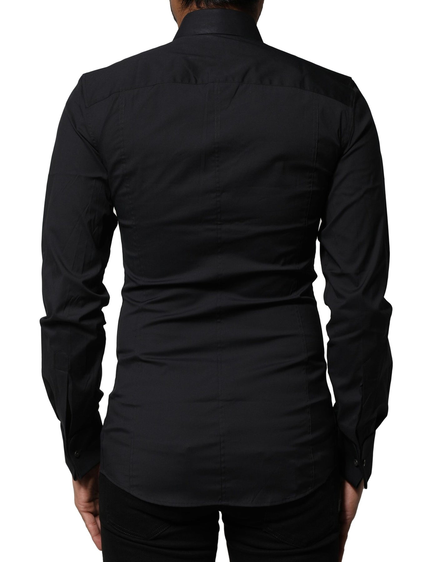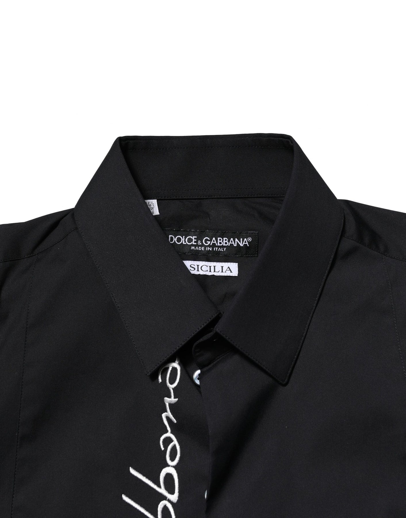 Dolce & Gabbana Black Cotton SICILIA Logo Men Dress Shirt