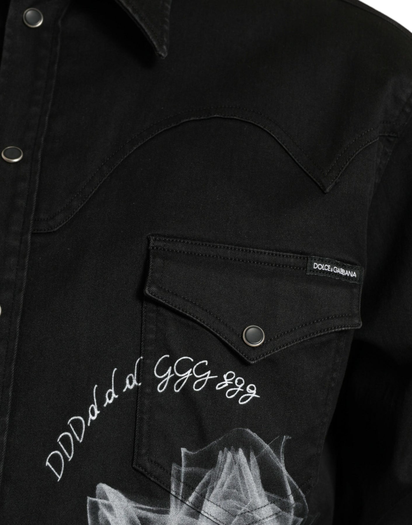 Dolce & Gabbana Black Floral Cotton Collared Dress Shirt