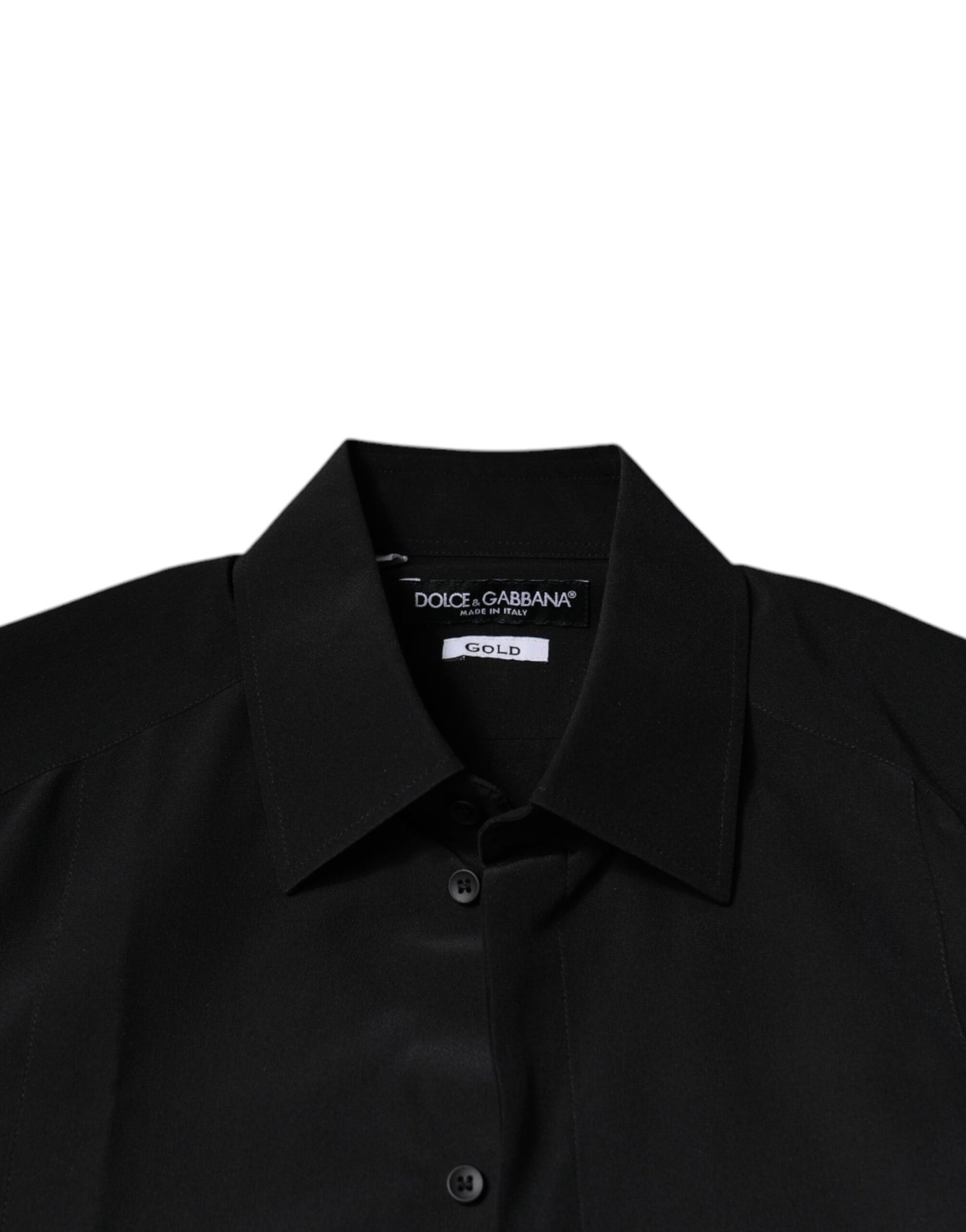 Dolce & Gabbana Black Silk Long Sleeves GOLD Dress Shirt