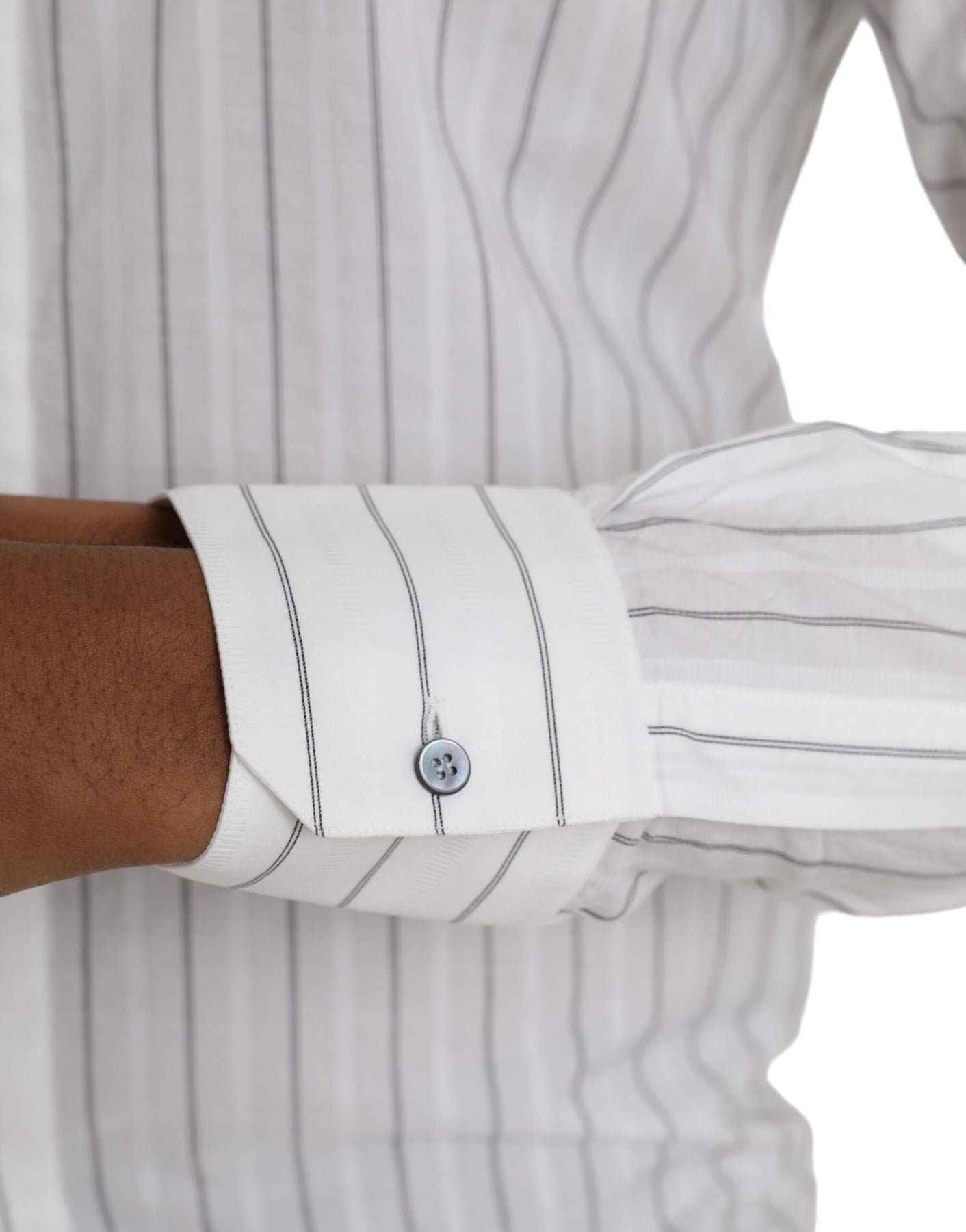 Dolce & Gabbana Black White Striped Formal Dress GOLD Shirt