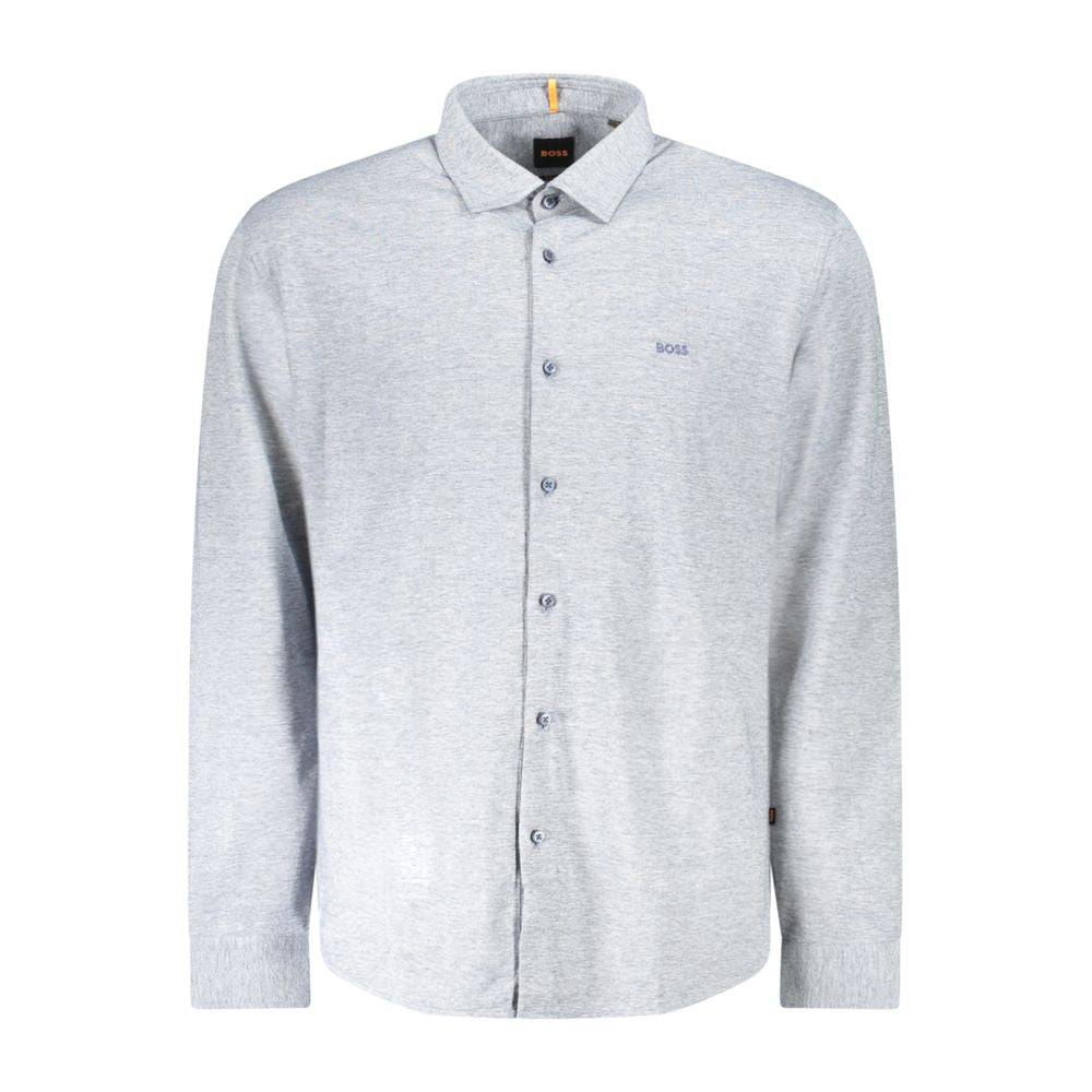 Elevate your wardrobe with the sleek refinement of a Hugo Boss long-sleeved shirt. This slim-fit treasure, tailored for the modern gentleman, features a sophisticated French collar and single-button cuffs. Its distinguished blue hue and subtle logo embroidery speak volumes of its high-caliber craftsmanship. Perfect for adding a touch of class to any ensemble, this shirt is an emblem of style and quality.