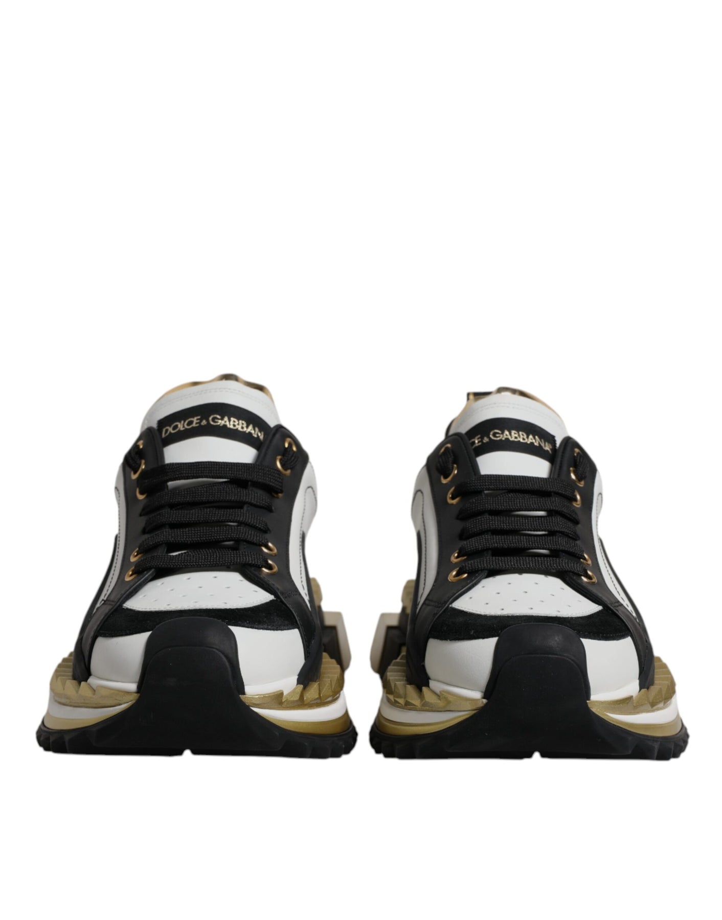 Dolce & Gabbana White Gold Black Leather SUPER KING Sneakers Shoes