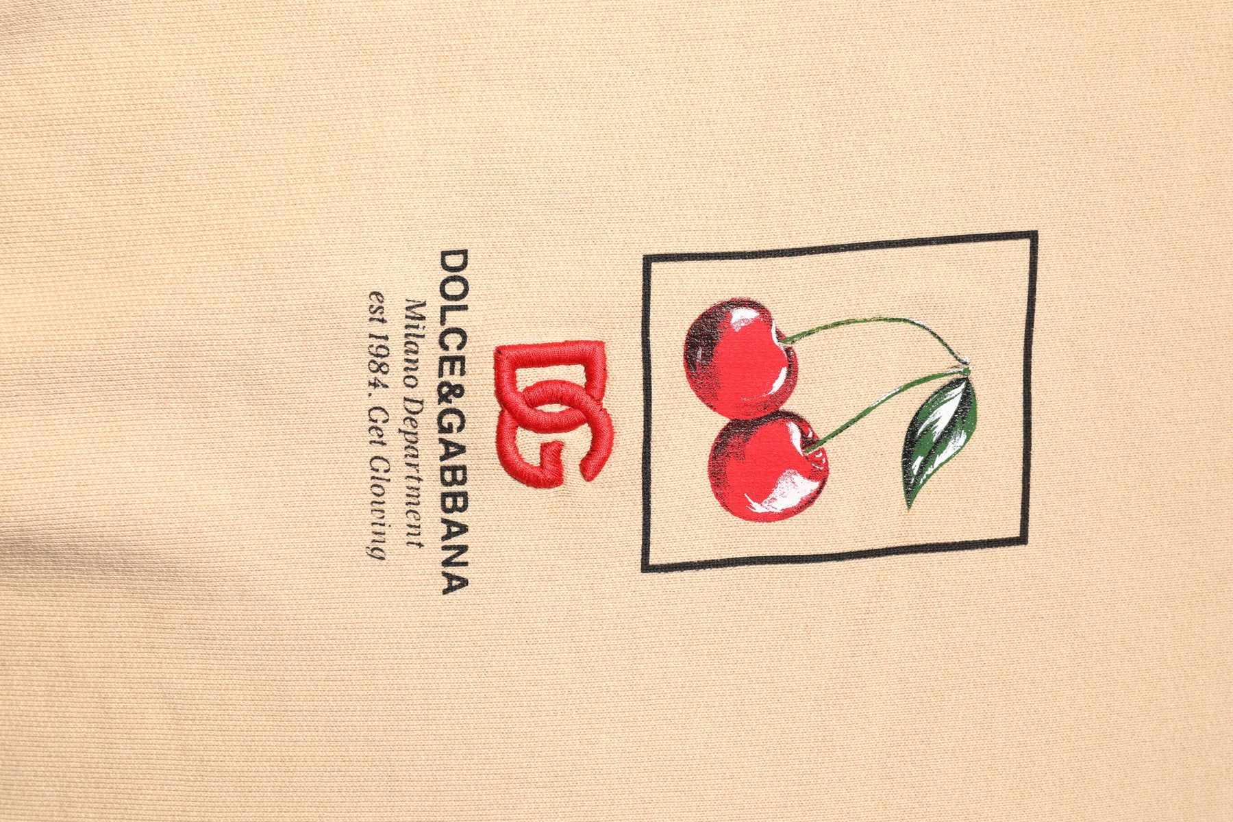 Dolce & Gabbana Beige Cherry Print Crew Neck Pullover Sweater