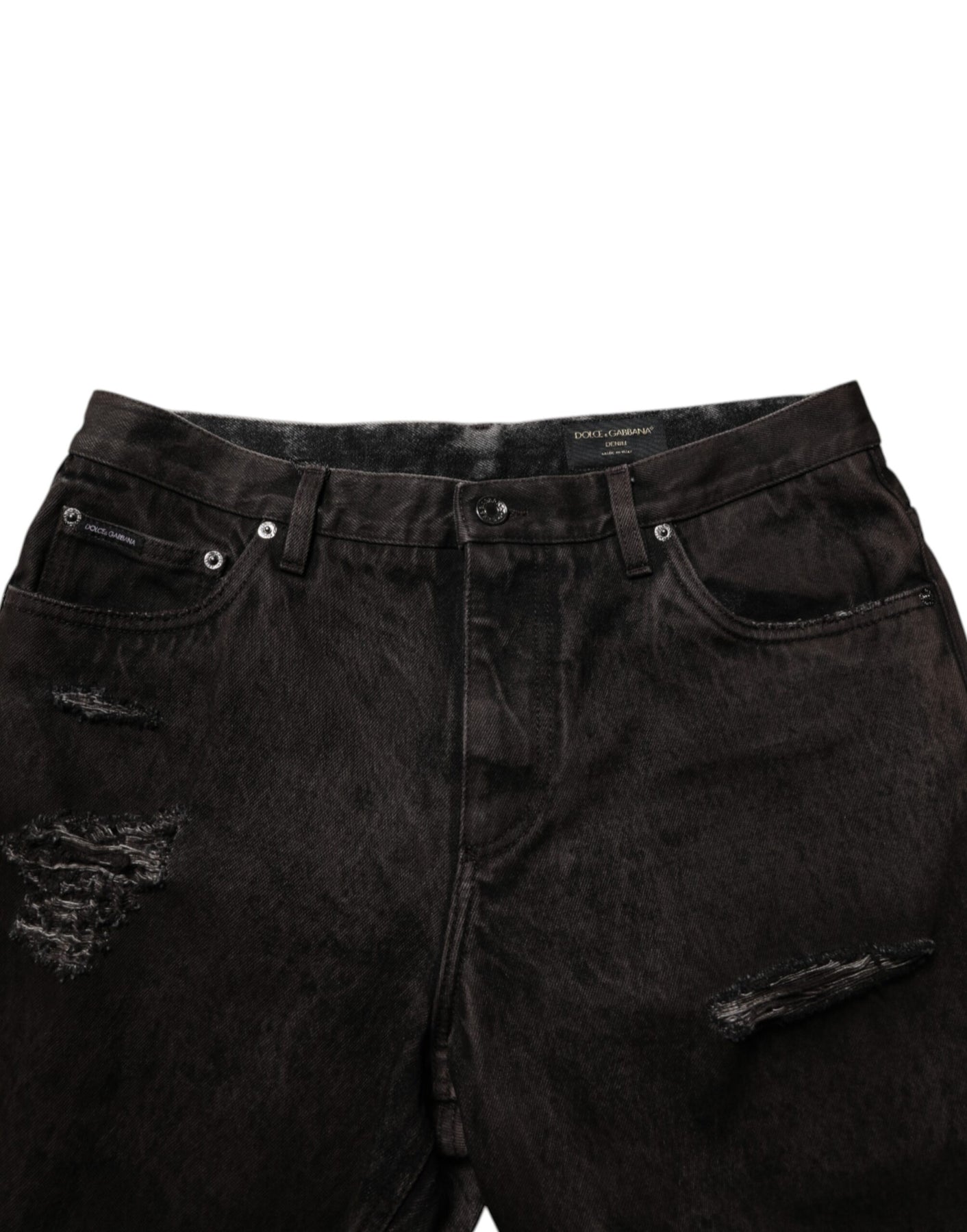 Dolce & Gabbana Black Cotton Tattered Denim Men Bermuda Short