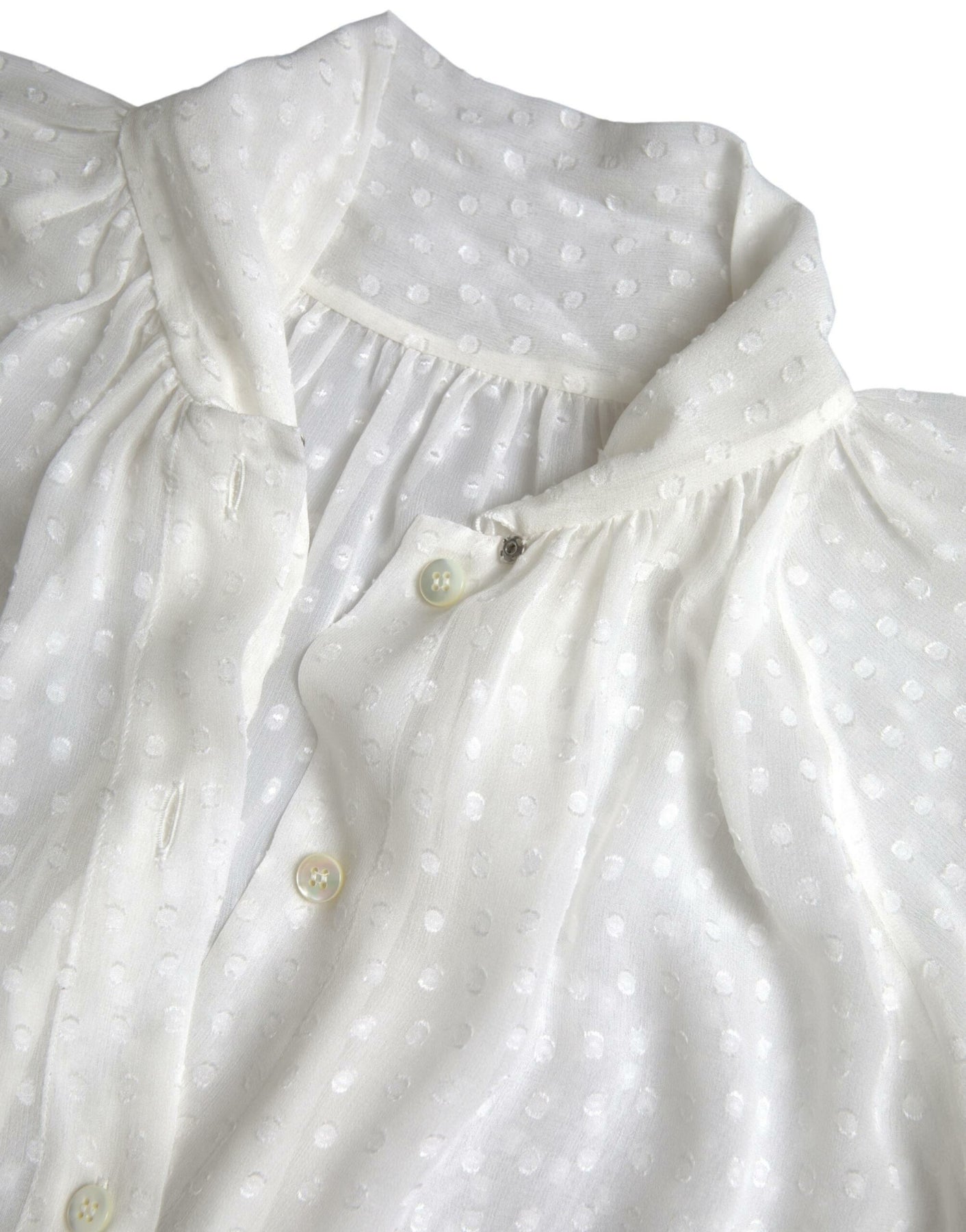 Dolce & Gabbana White Silk Sheer Tied Neck Polka Dots Blouse