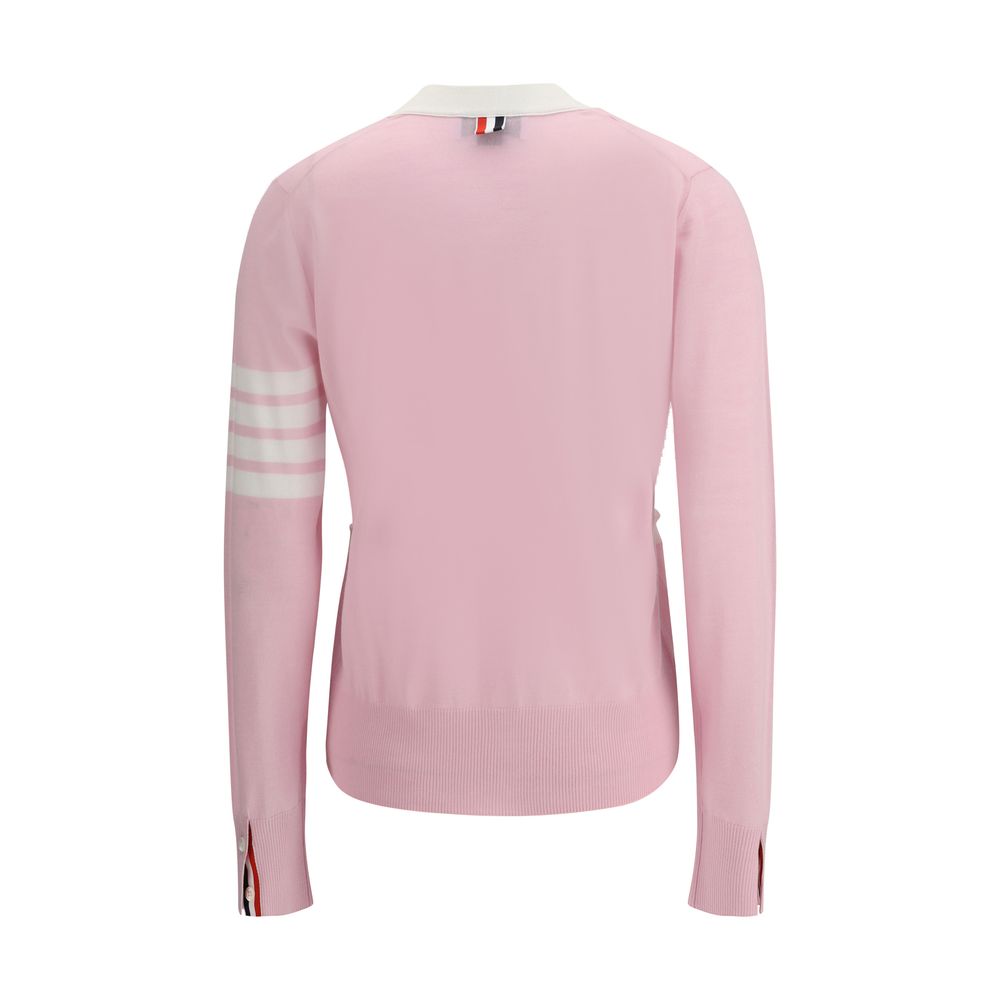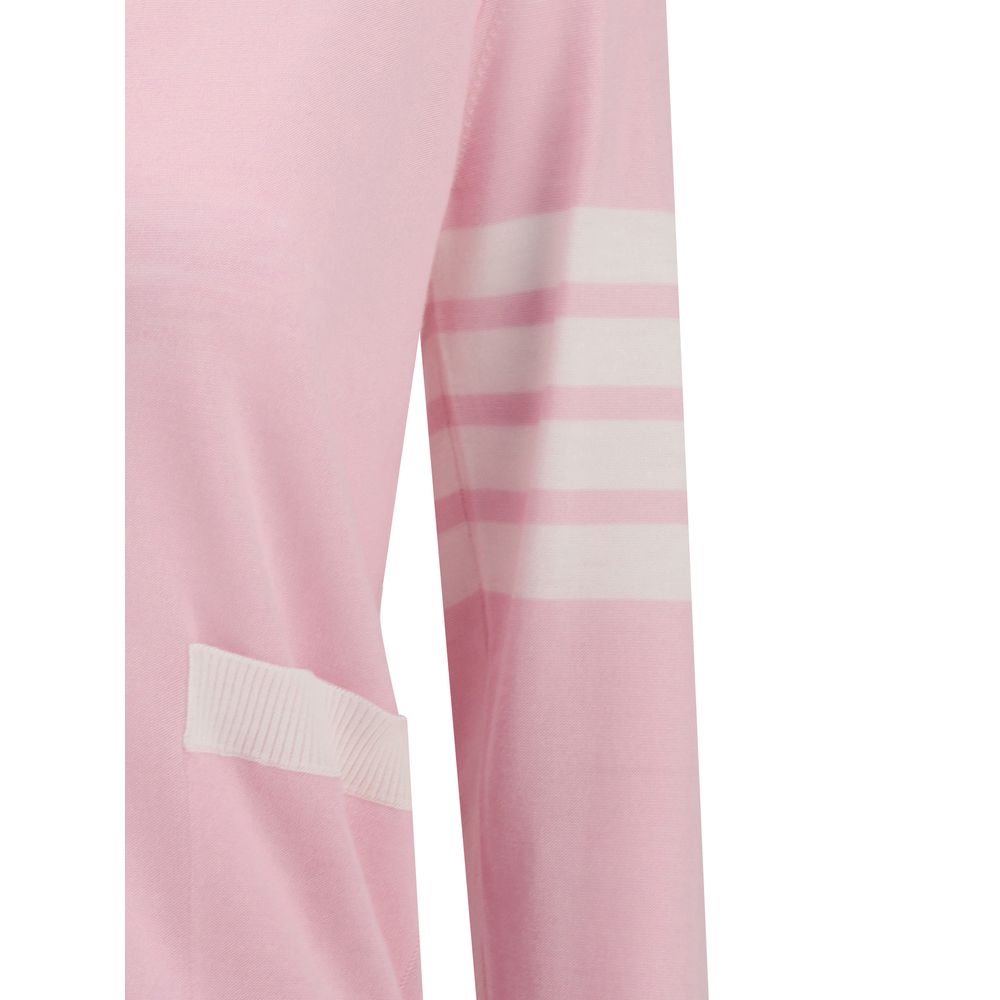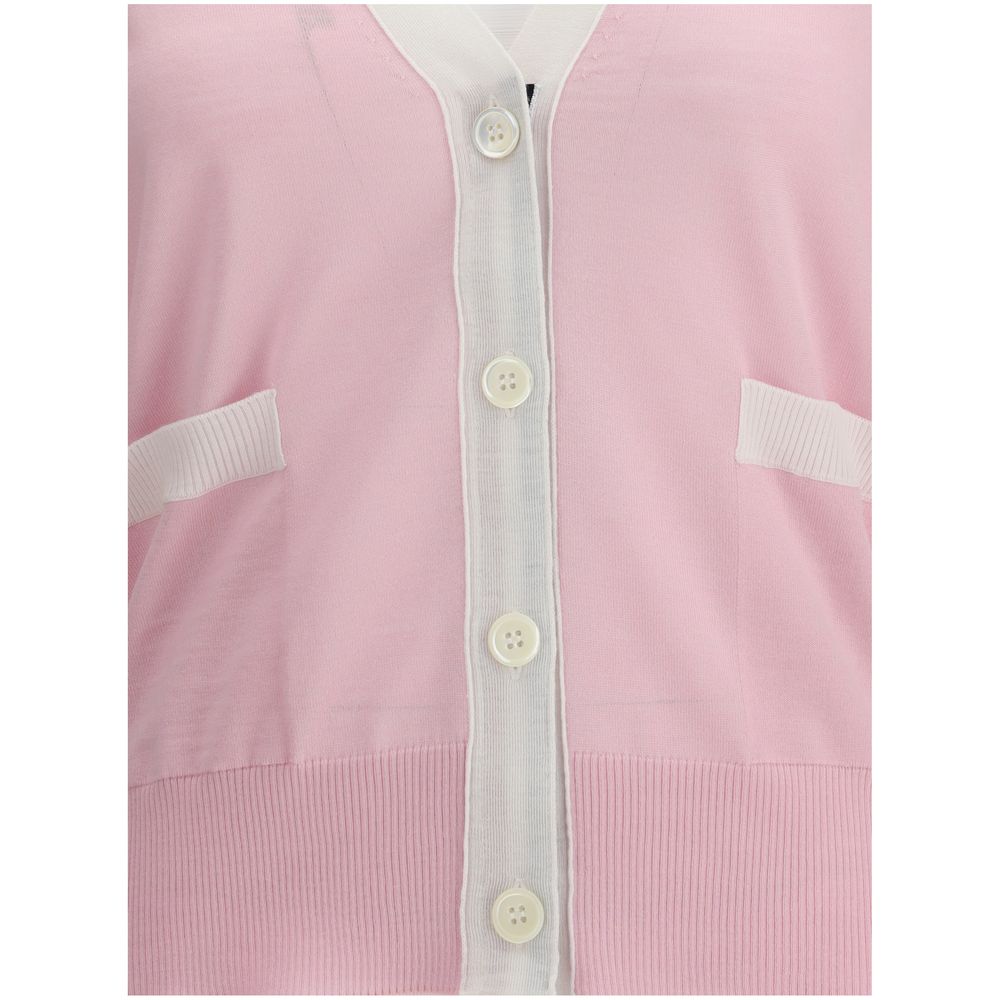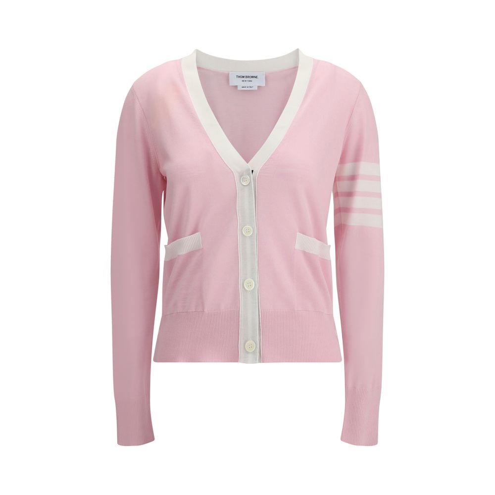 Thom Browne’s V-neck Cardigan is a classic revisited with iconic and refined details. Featuring a front button closure and contrasting piping, it has a ribbed hem and cuffs that define its structure. Small side slits and two welt pockets on the front add functionality and style for an elegant and versatile garment perfect for any season.