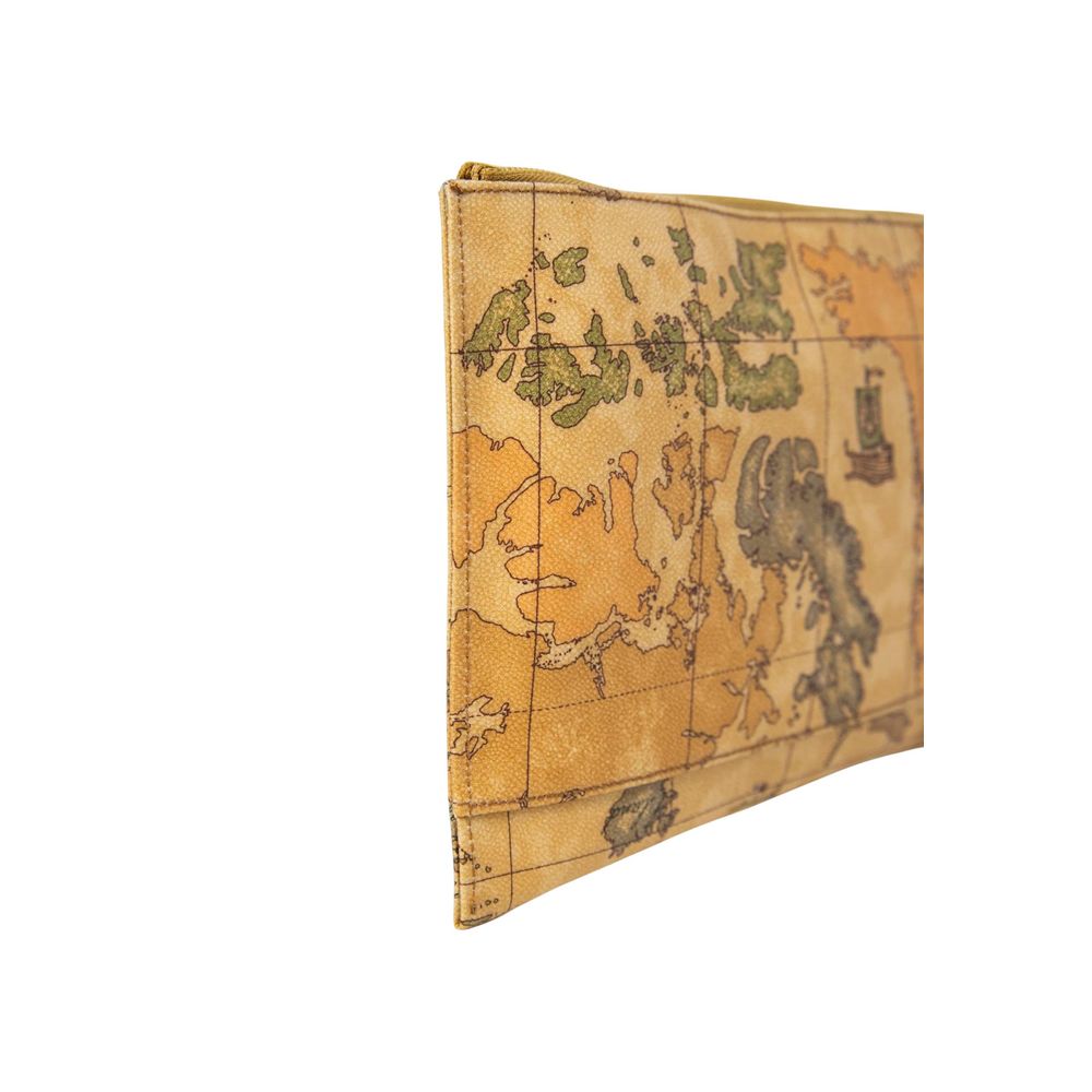 The Alviero Martini Prima Classe CLUTCH M043 6000 women’s clutch is the perfect accessory for those seeking both elegance and practicality. Crafted from a refined blend of high-quality materials â 46% cotton, 35% polyester, 9% polyurethane, and 10% faux leather â this clutch stands out with the famous Geo Classic print, featuring the brandâs iconic map motif. Its compact silhouette and zip closure make it ideal for carrying small essentials, while the practical wrist strap adds a functional and chic touch. Perfect for special occasions, elegant evenings, or as a travel beauty case, this clutch brings a distinctive style to any outfit.