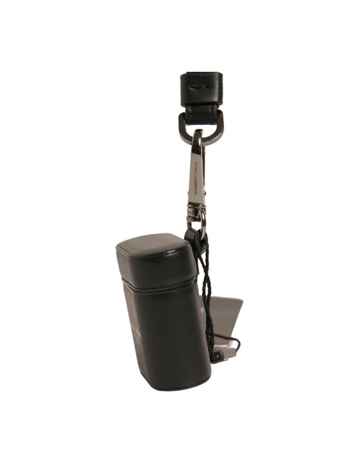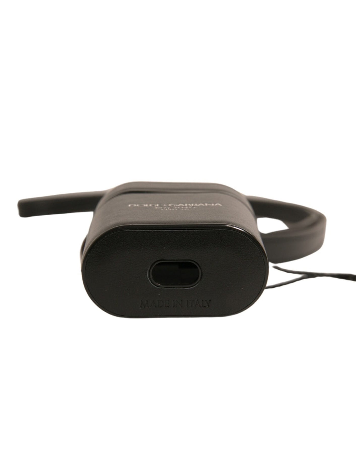 Dolce & Gabbana Black Leather Logo Silver Metal Strap Airpods Case