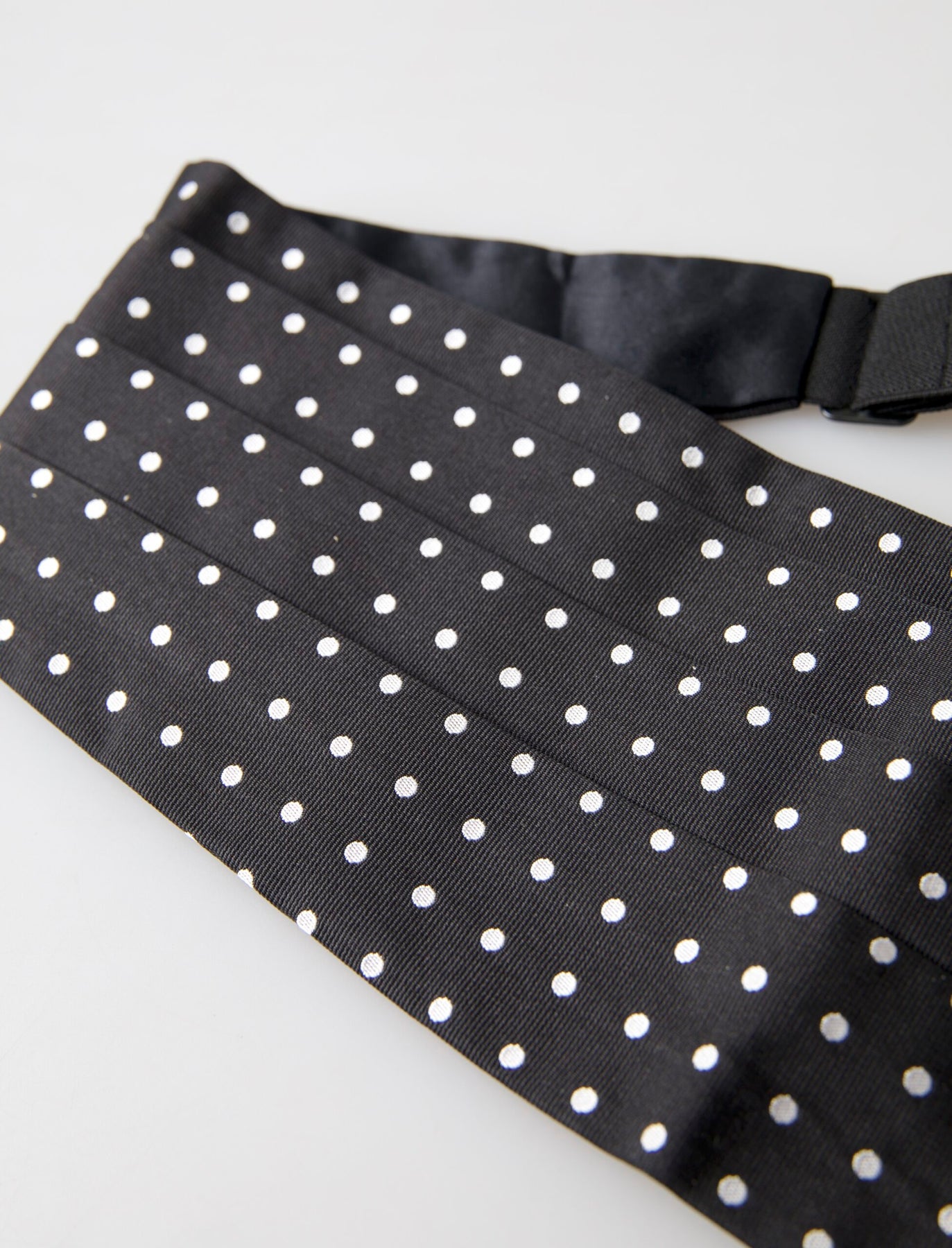 Dolce & Gabbana Black Silk Polka Waist Tuxedo Belt Cummerbund