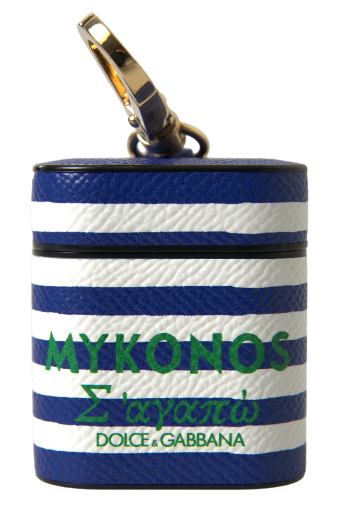 Dolce & Gabbana Blue Stripe Dauphine Leather Logo Print Strap Airpod Case