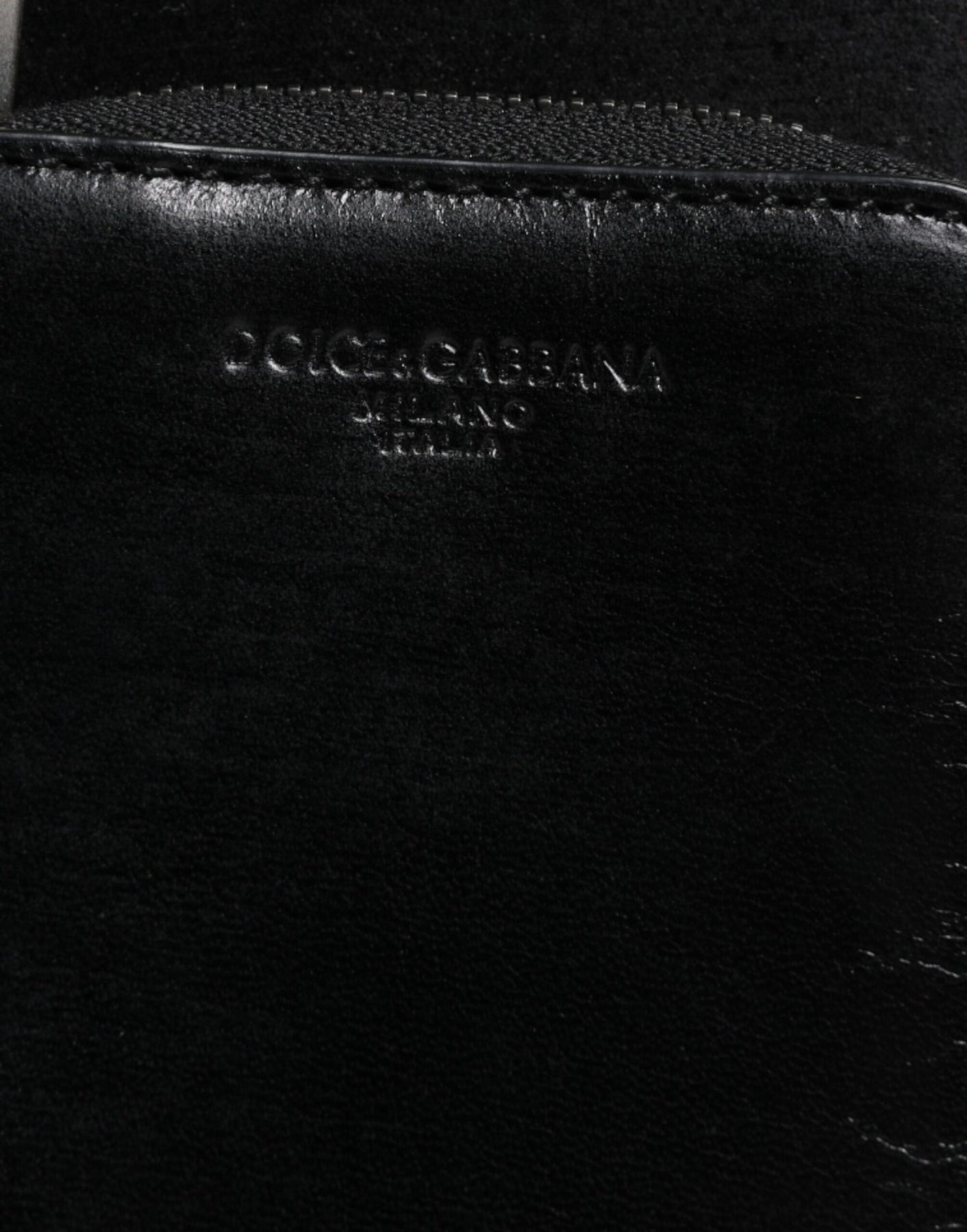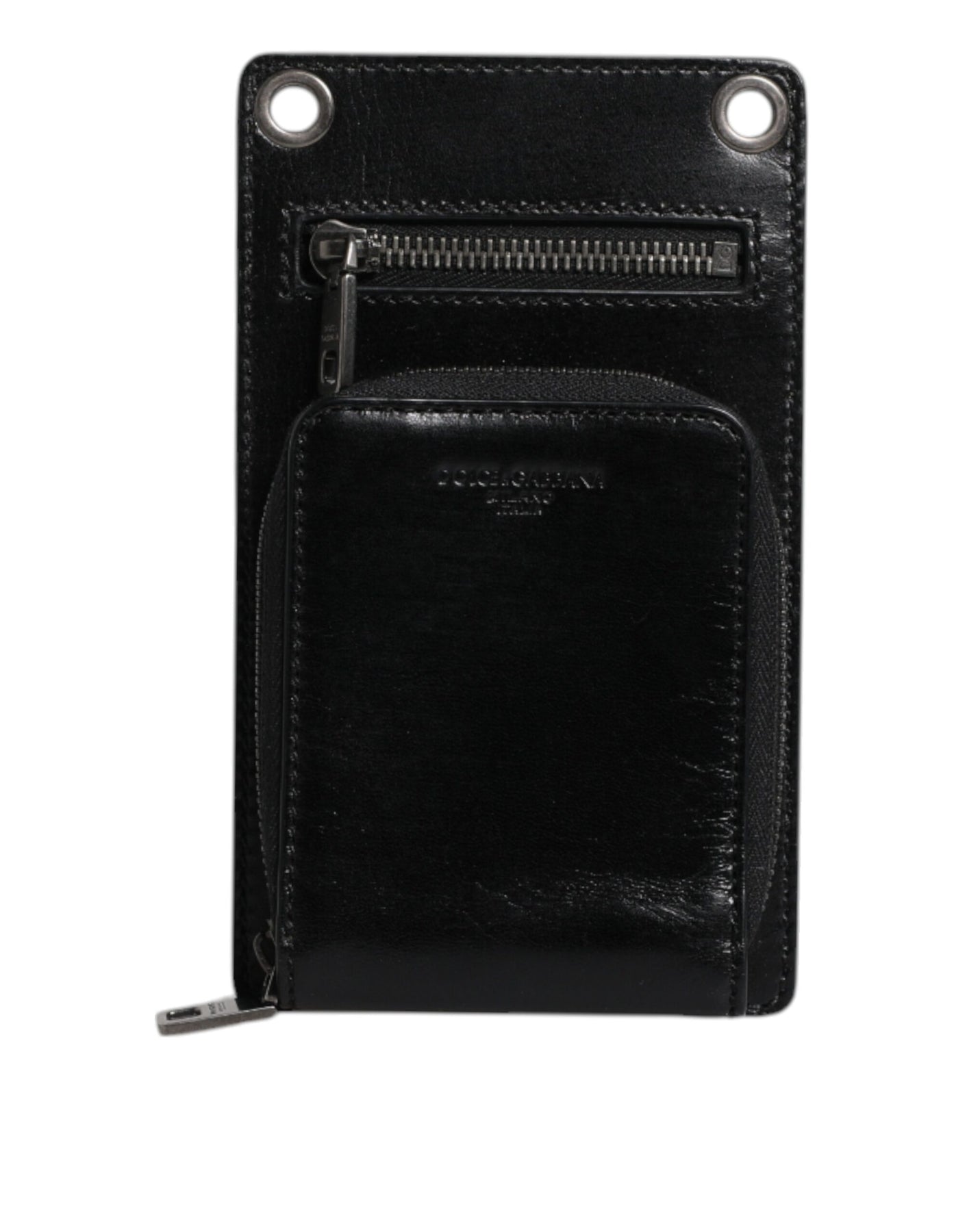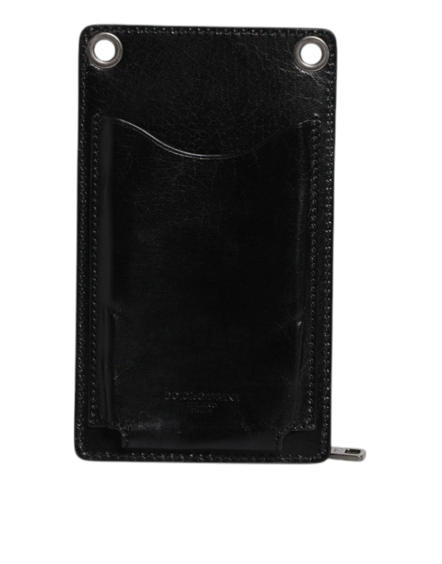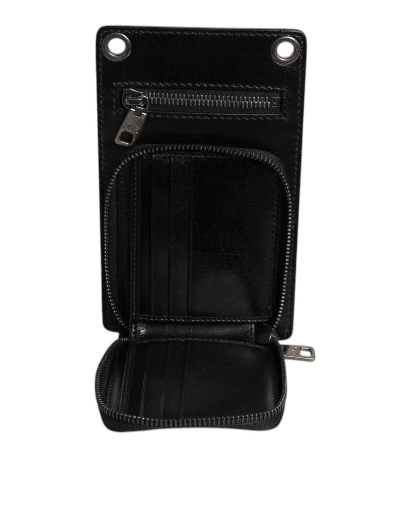 Dolce & Gabbana Black Horse Leather Zip Logo Shoulder Neck Strap Wallet