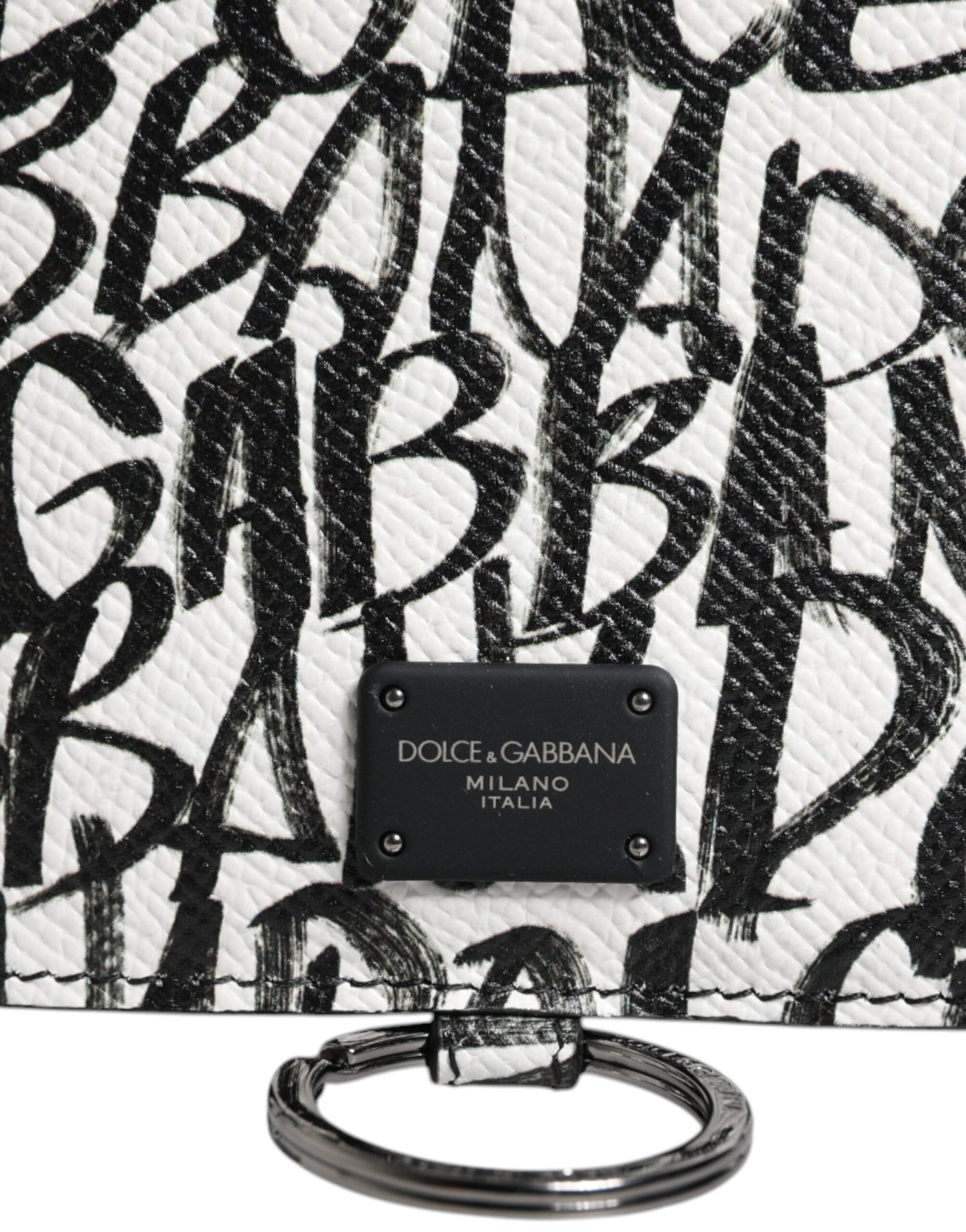 Dolce & Gabbana White Leather Lanyard Logo Print Card Holder Wallet