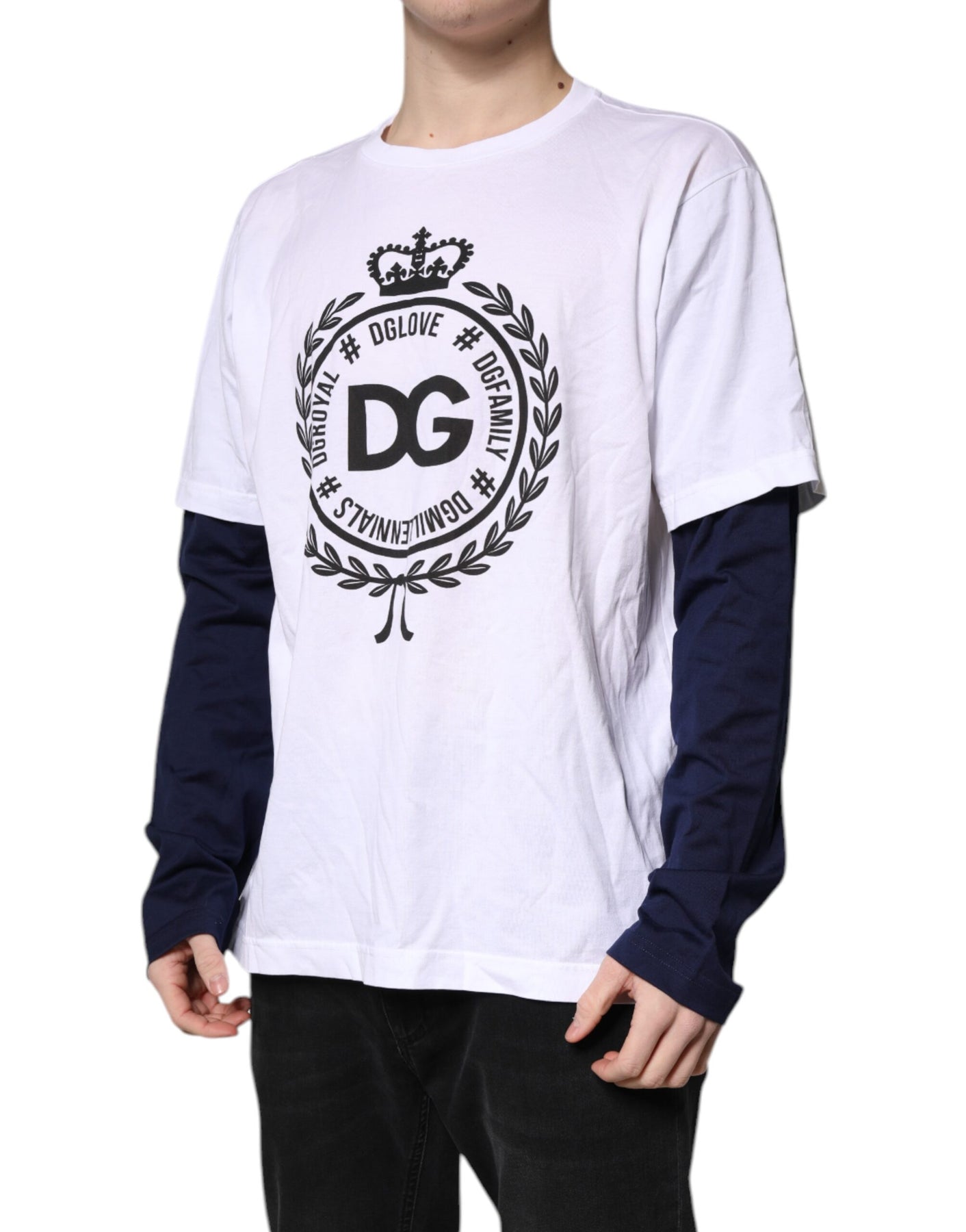 Gorgeous brand new, 100% Authentic Dolce & Gabbana cotton t-shirt with inner long sleeves features a short sleeves and crew neckline.