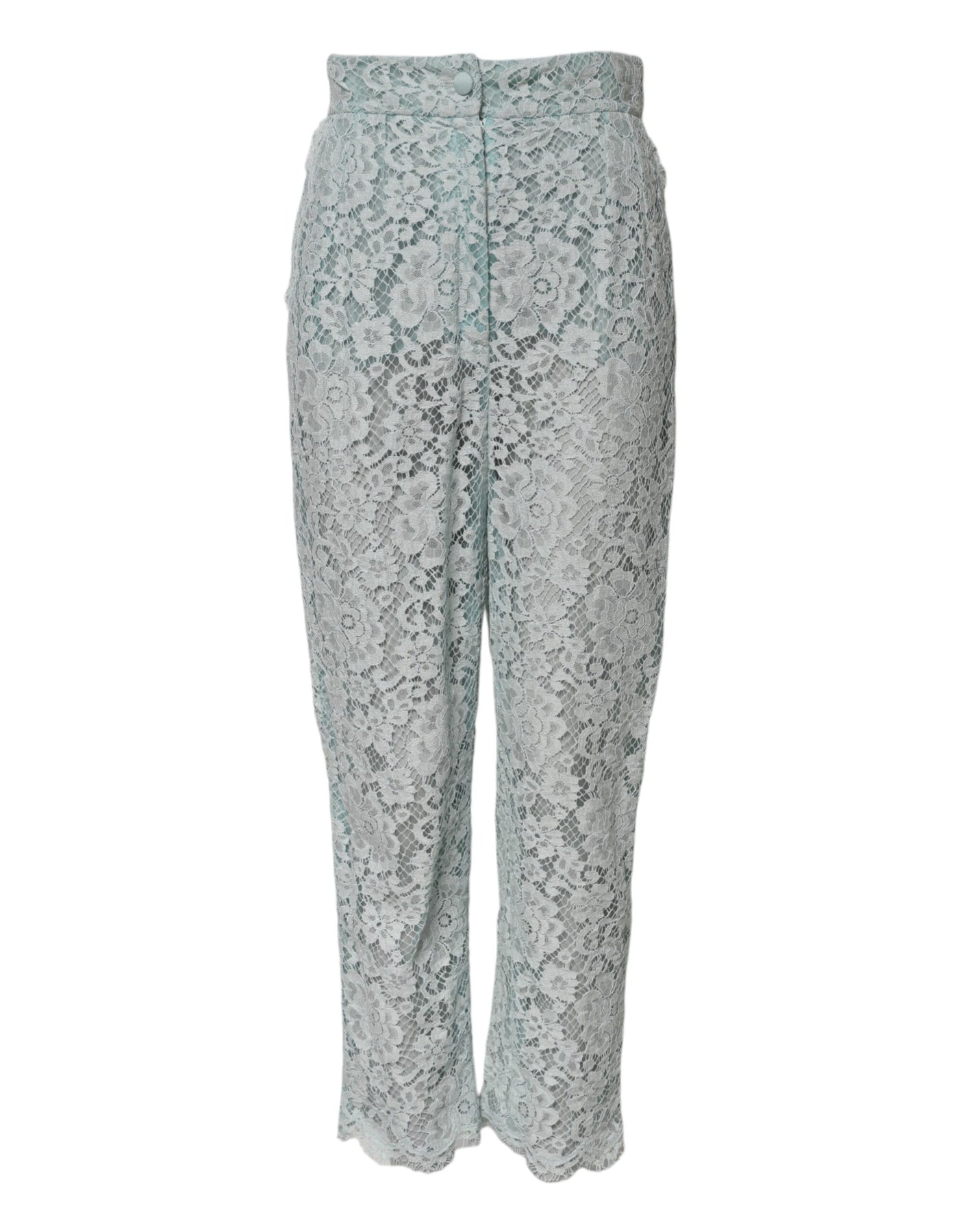 Dolce & Gabbana Mint Green Cotton Floral Lace Trousers Pants