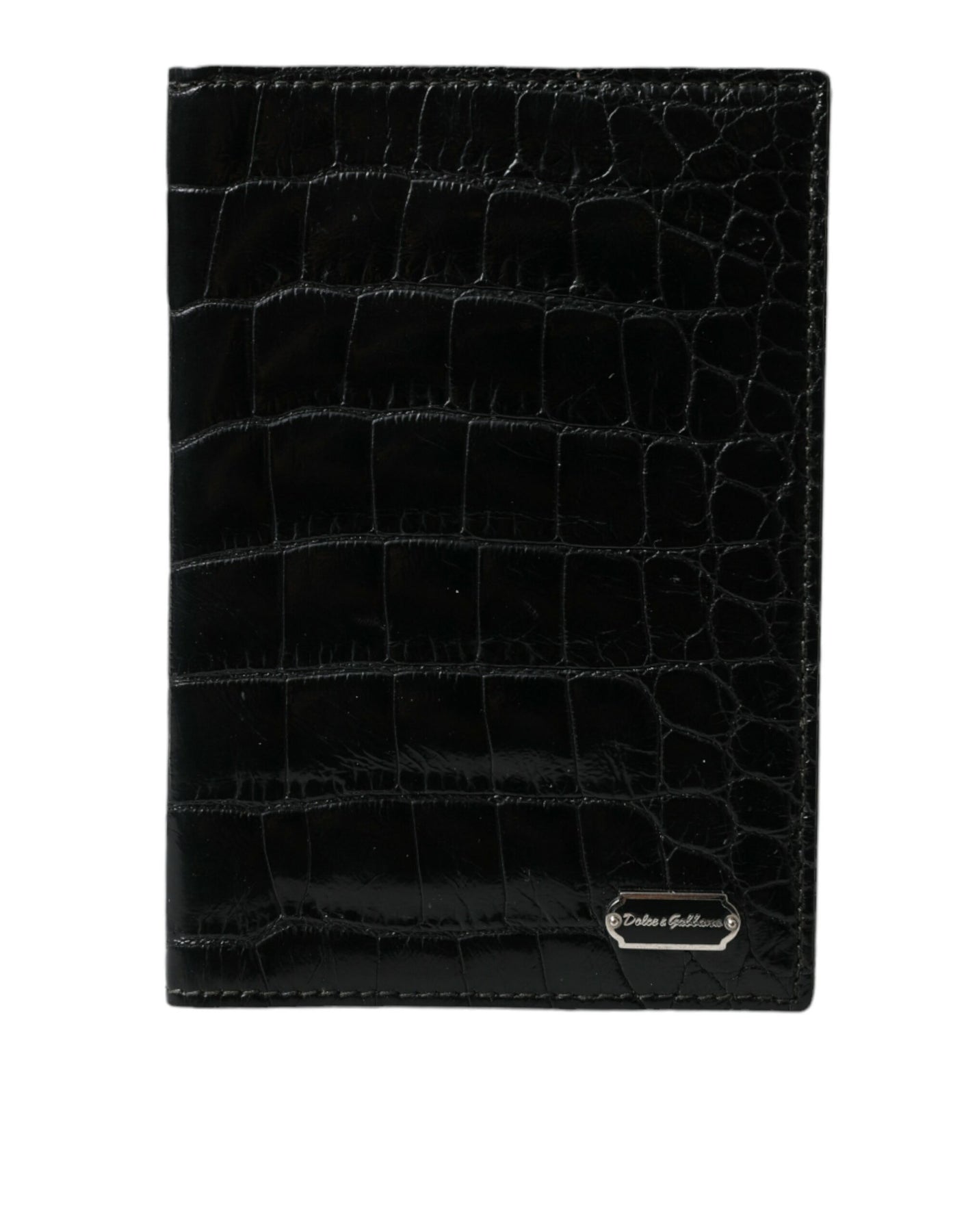 Porte-passeport long à deux volets en cuir exotique noir Dolce & Gabbana