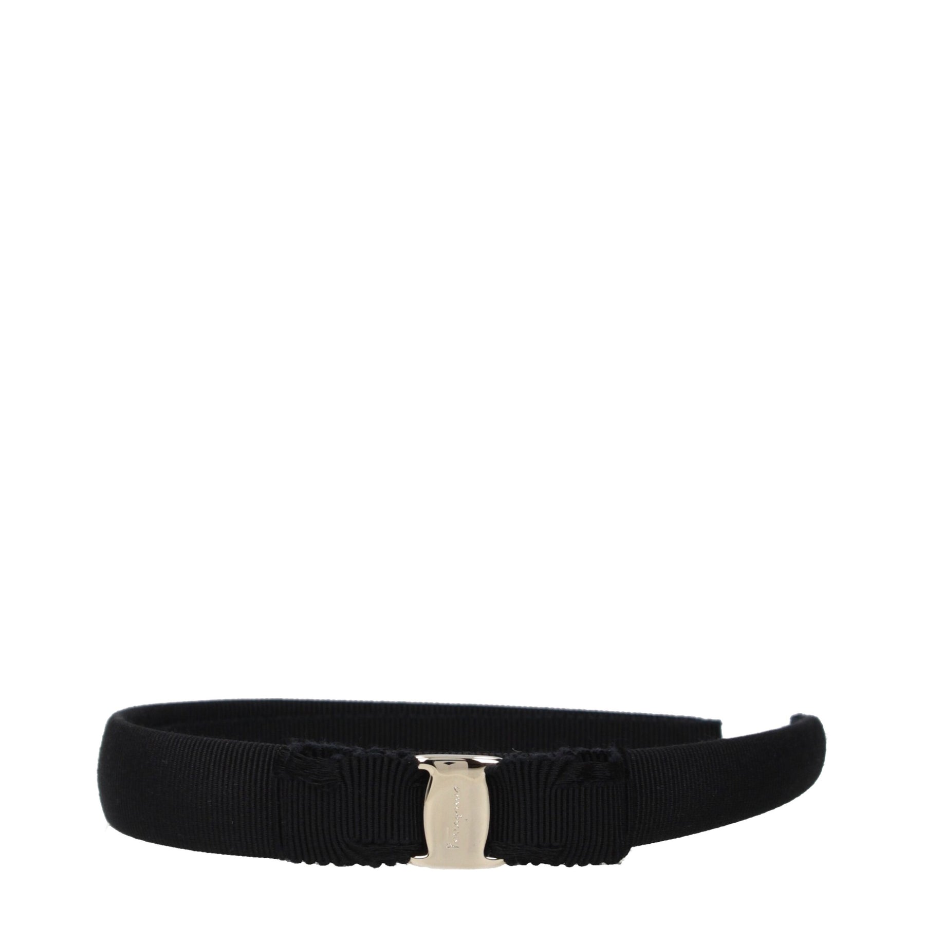 The product with MPN 346971660977 and code F85593 cotton in black is a hair accessories designed by Salvatore Ferragamo. It has features like side logo.