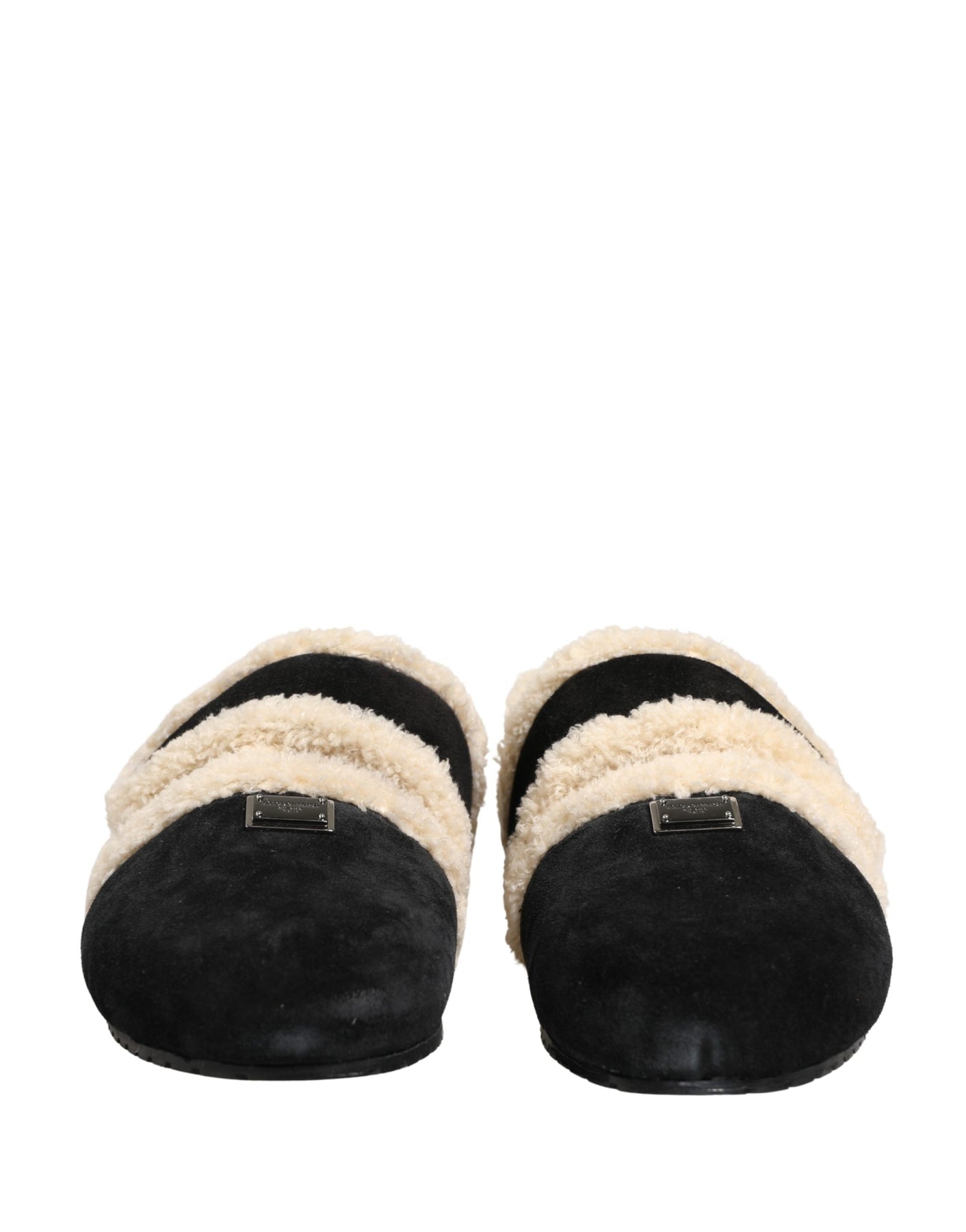 Dolce & Gabbana Beige Black Faux Fur Flats Men Sandals Shoes