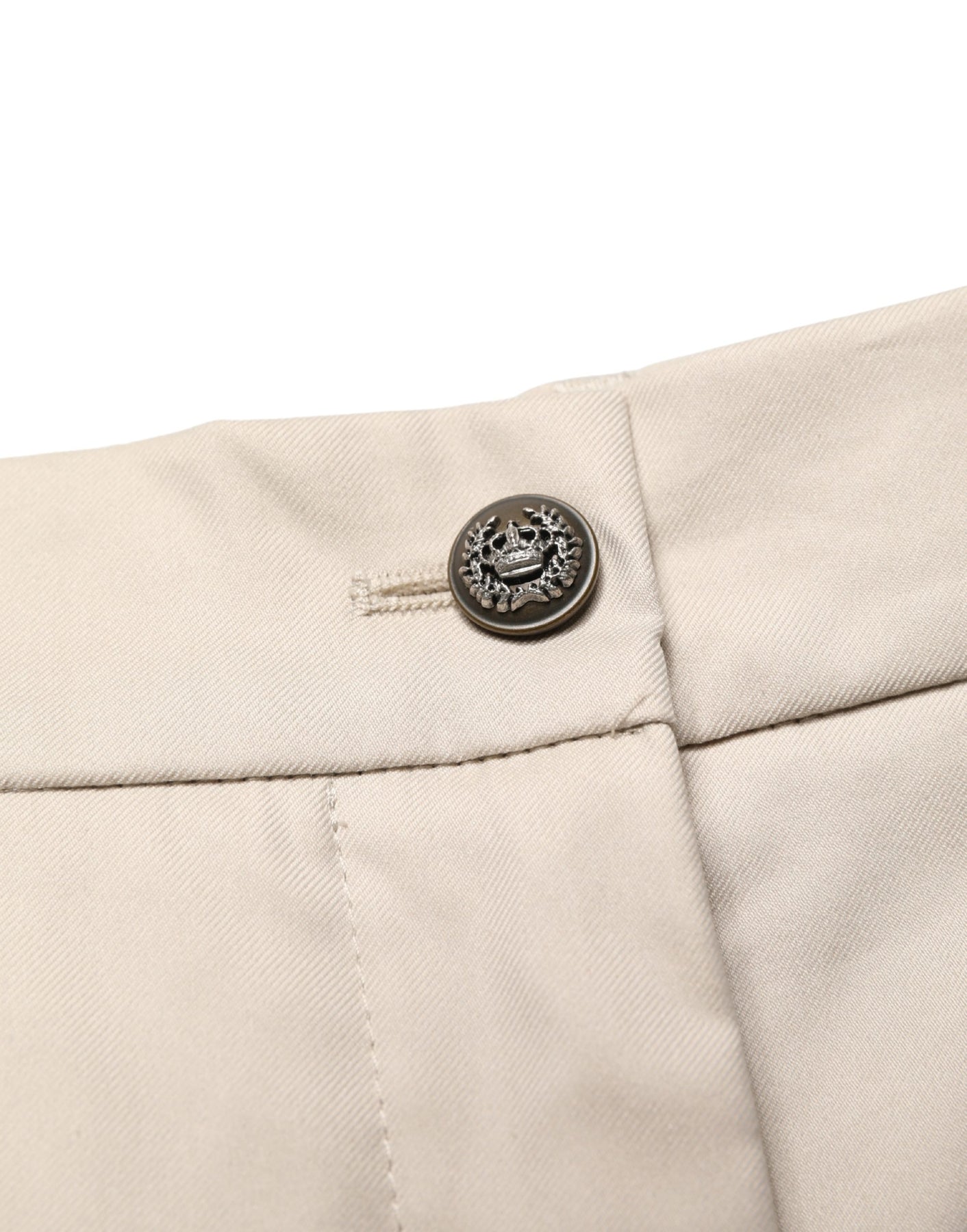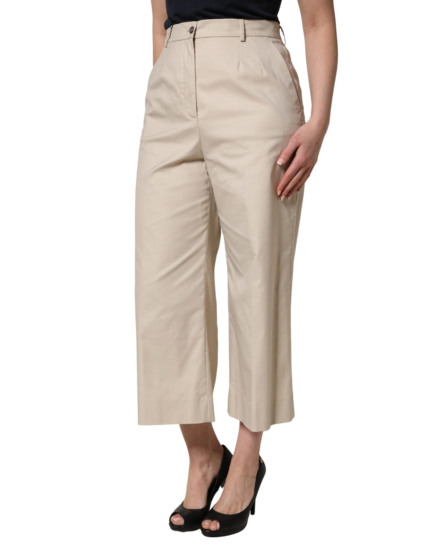 Dolce & Gabbana Beige Cotton Mid Waist Cropped Trouser Pants