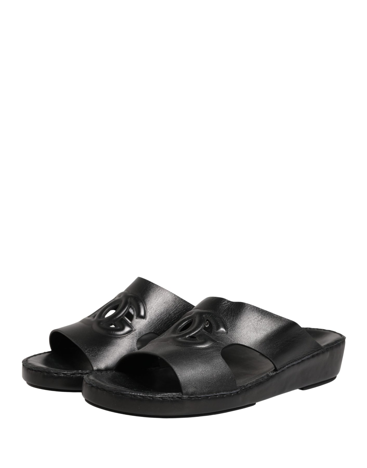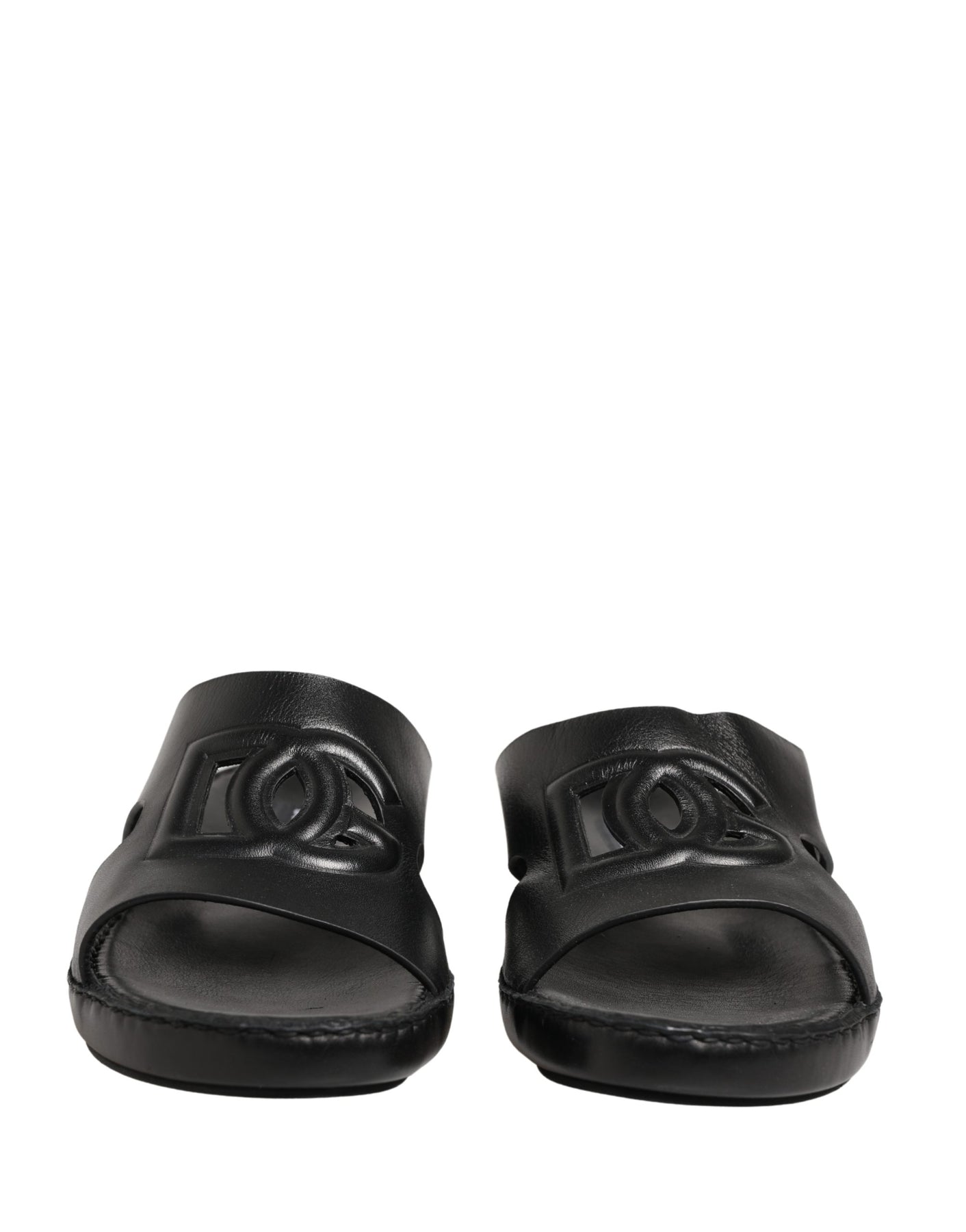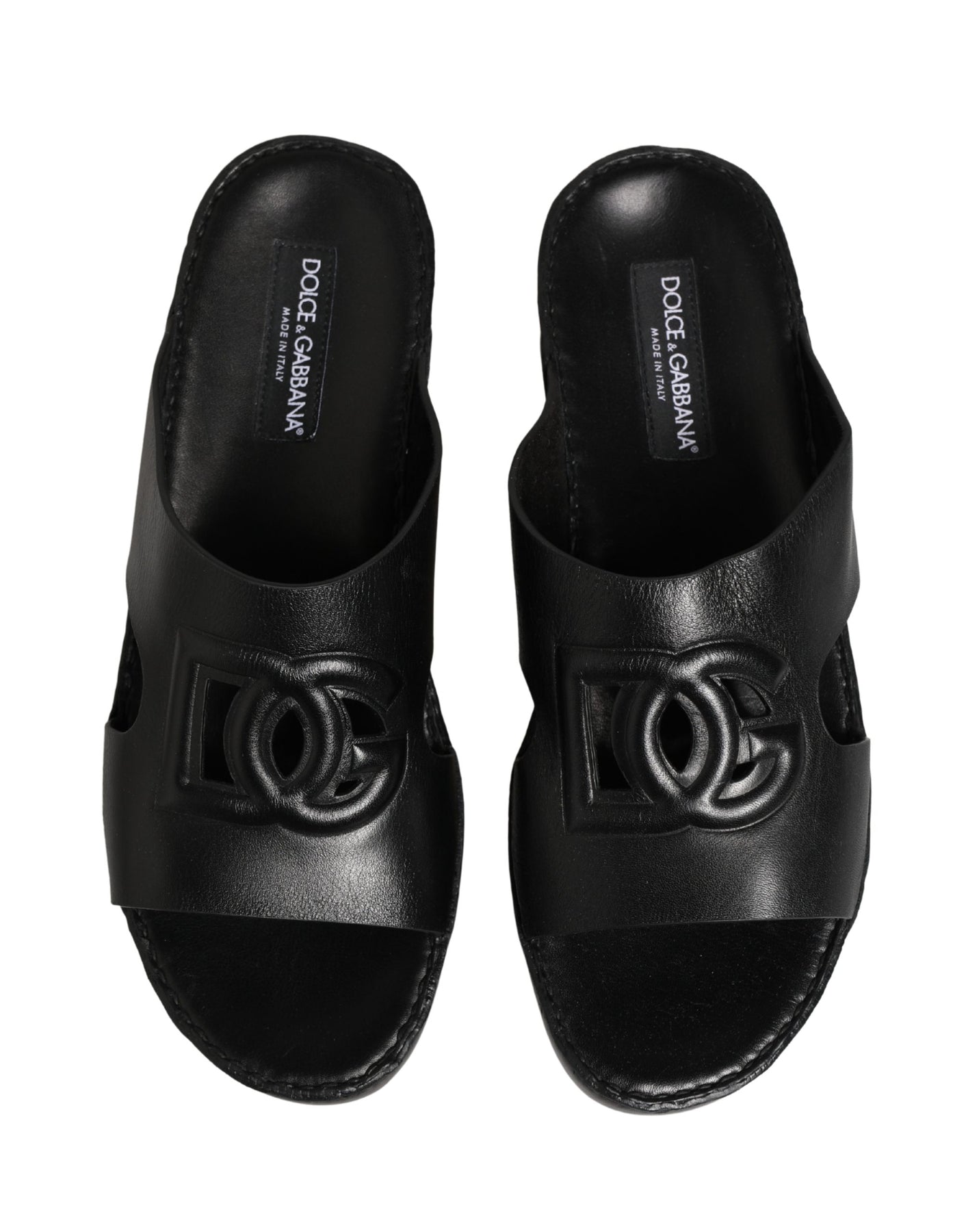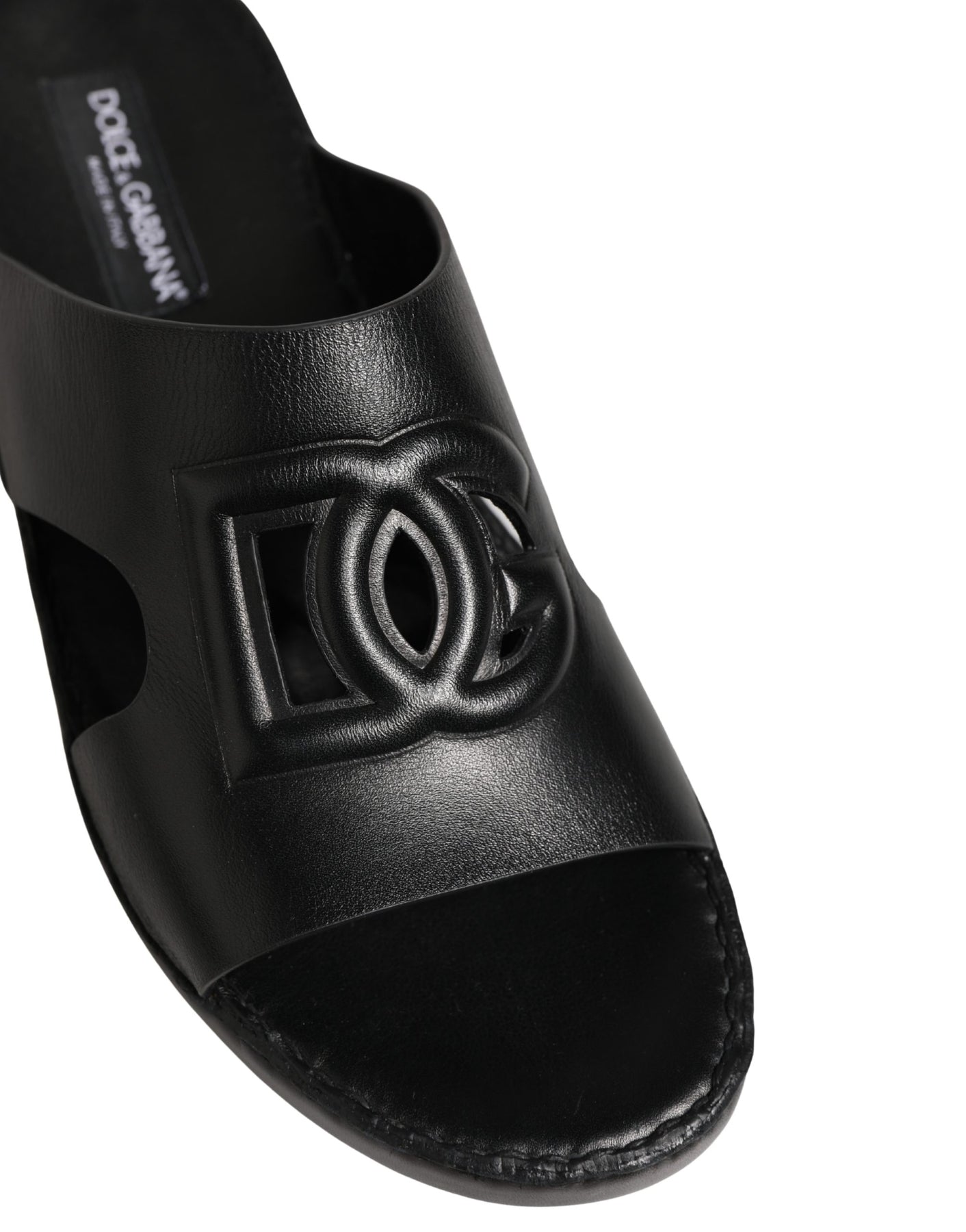 Dolce & Gabbana Black Leather Cutout DG Logo Sandals Shoes
