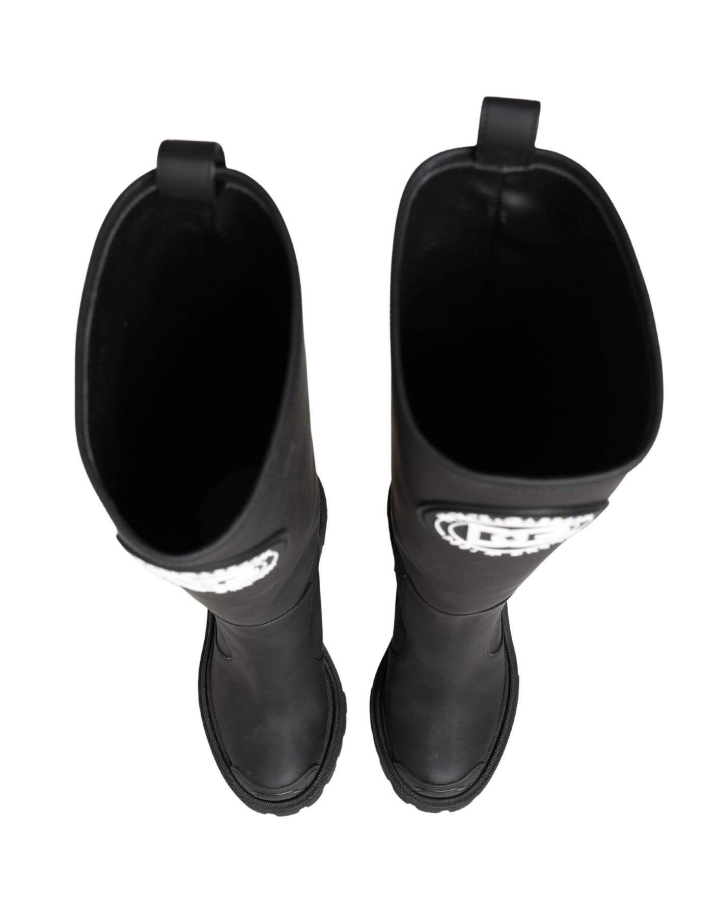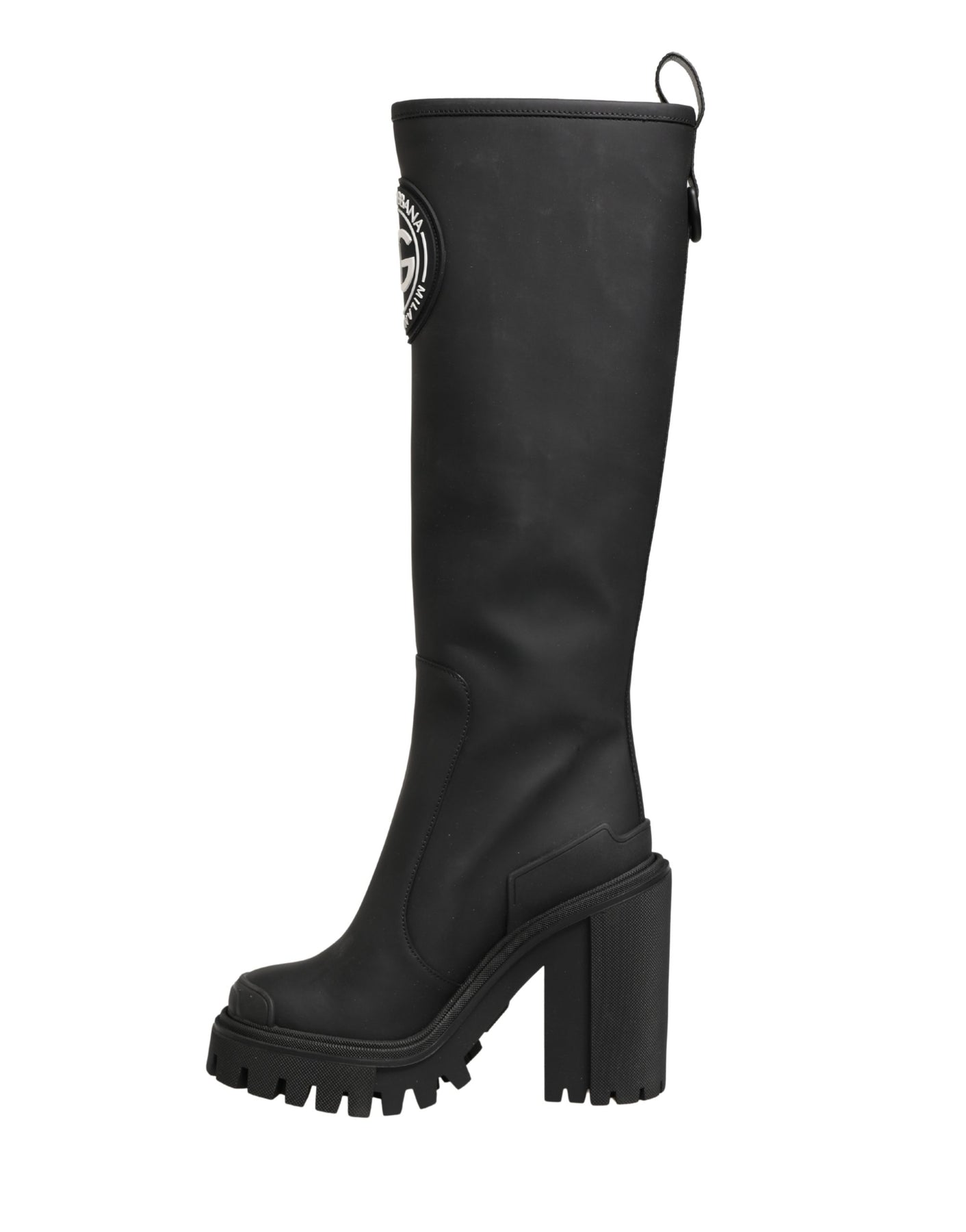 Dolce & Gabbana Black Rubberised Leather High Boots Shoes