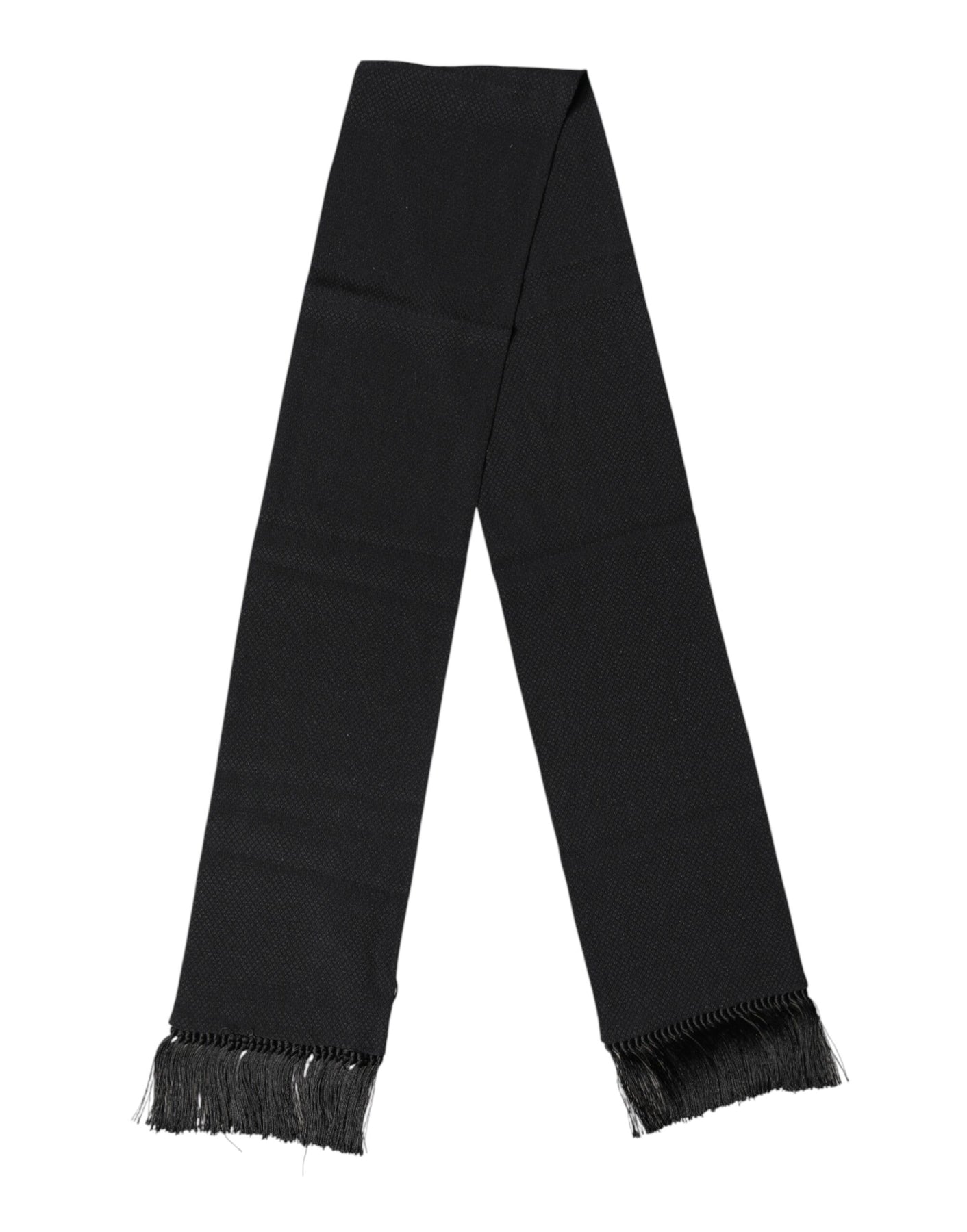 Dolce & Gabbana Black Silk Fringes Neck Wrap Foulard Scarf