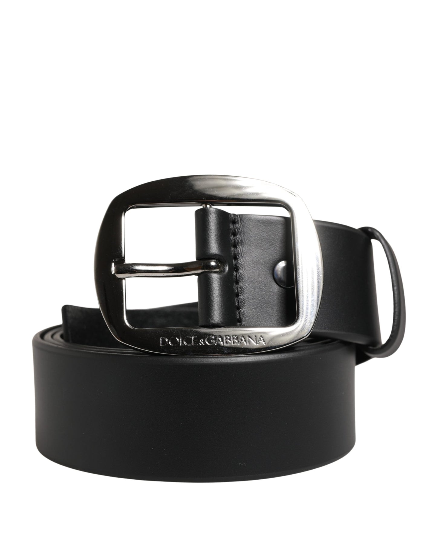 Dolce & Gabbana Men Black Leather Classic Metal Buckle Belt