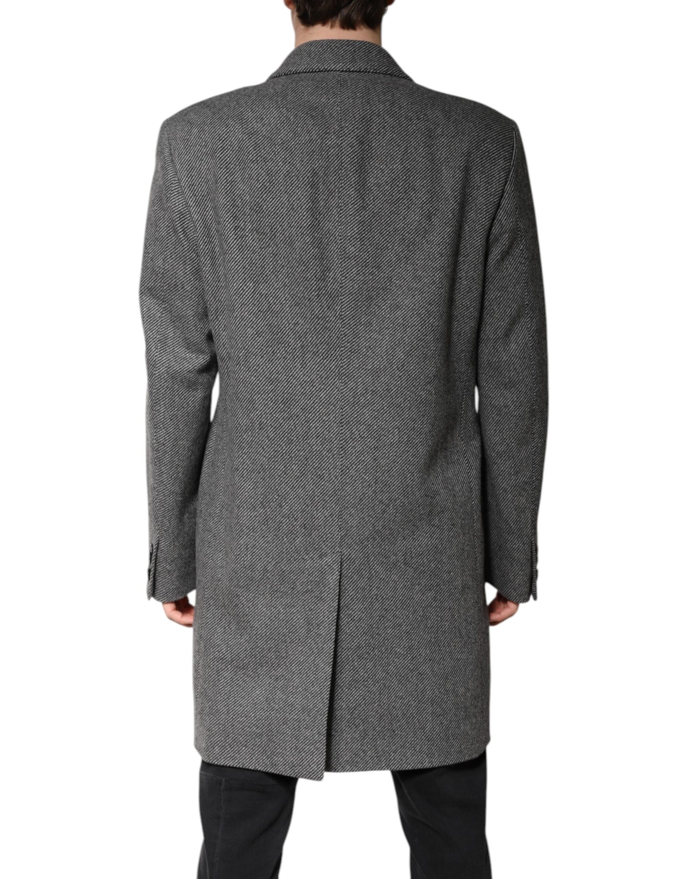 Trench-coat simple boutonnage en laine grise Dolce & Gabbana