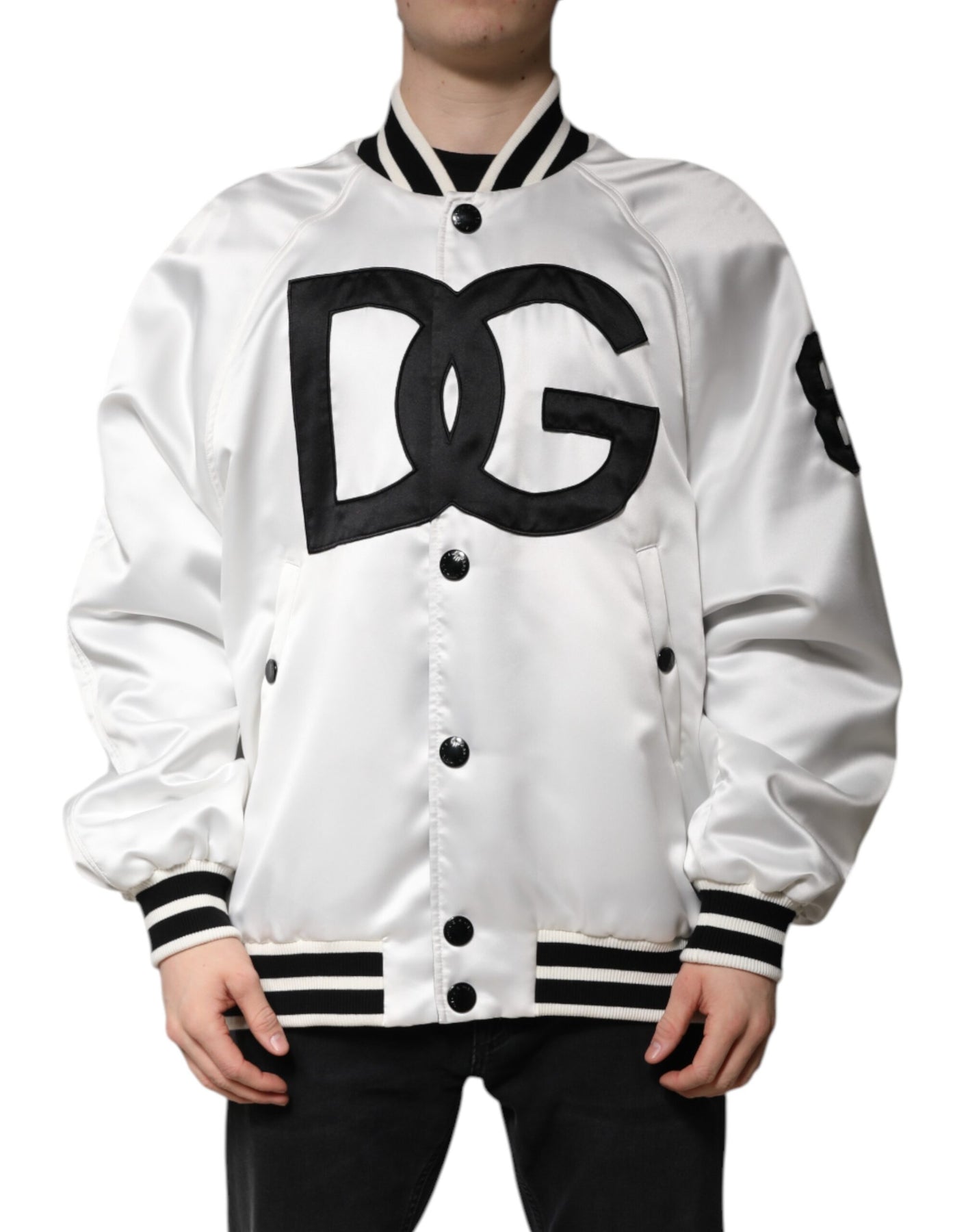 Blouson aviateur en jersey de polyester blanc avec logo DG Dolce & Gabbana